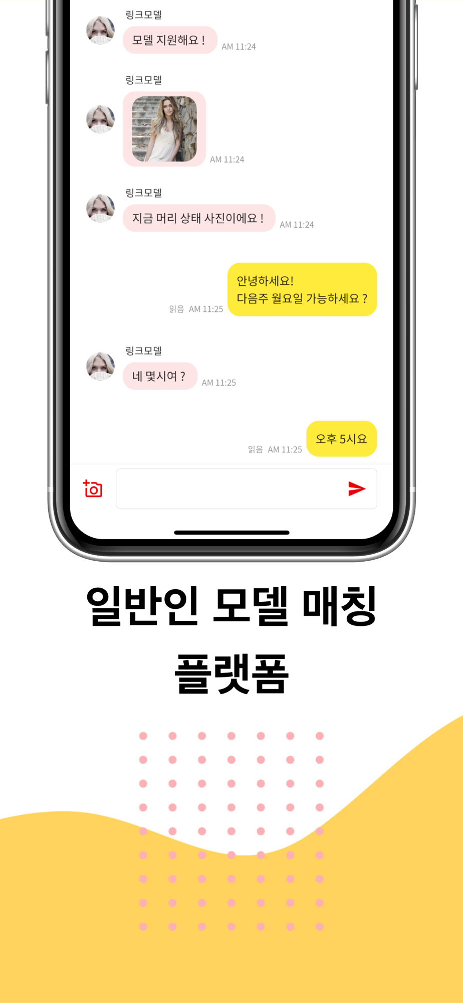 모델링크 앱에서 제공하는 실시간 채팅기능으로