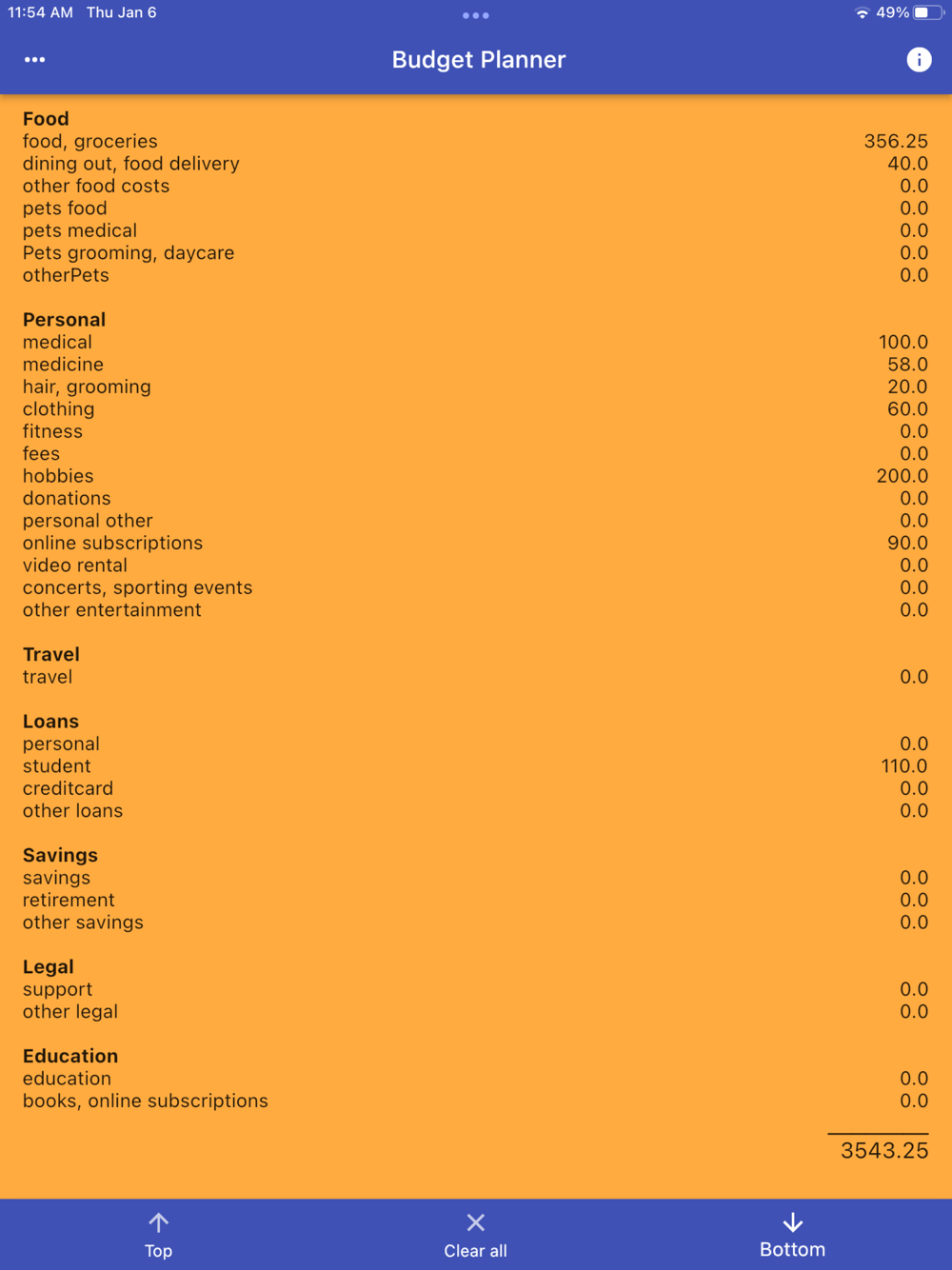 An easy to use, minimalist designed app to track and plan a monthly personal budget. Income and expenses are broken down into over 50 categories.