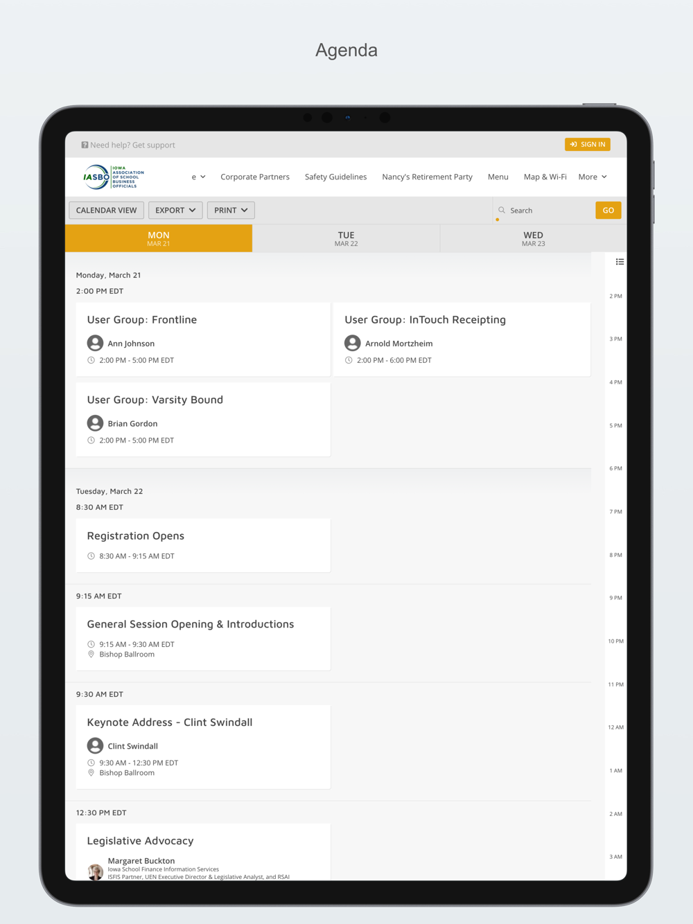 The IASBO Spring Conference app, powered by Pathable, will help you network with other attendees, interact with our presenters, access session details & handouts, record session attendance, and learn about our Corporate Partners and Vendors attending the event. Please note that this community is exclusively for IASBO Spring Conference attendees, and you will be able to use it before, during, and 6 months after the conference concludes.