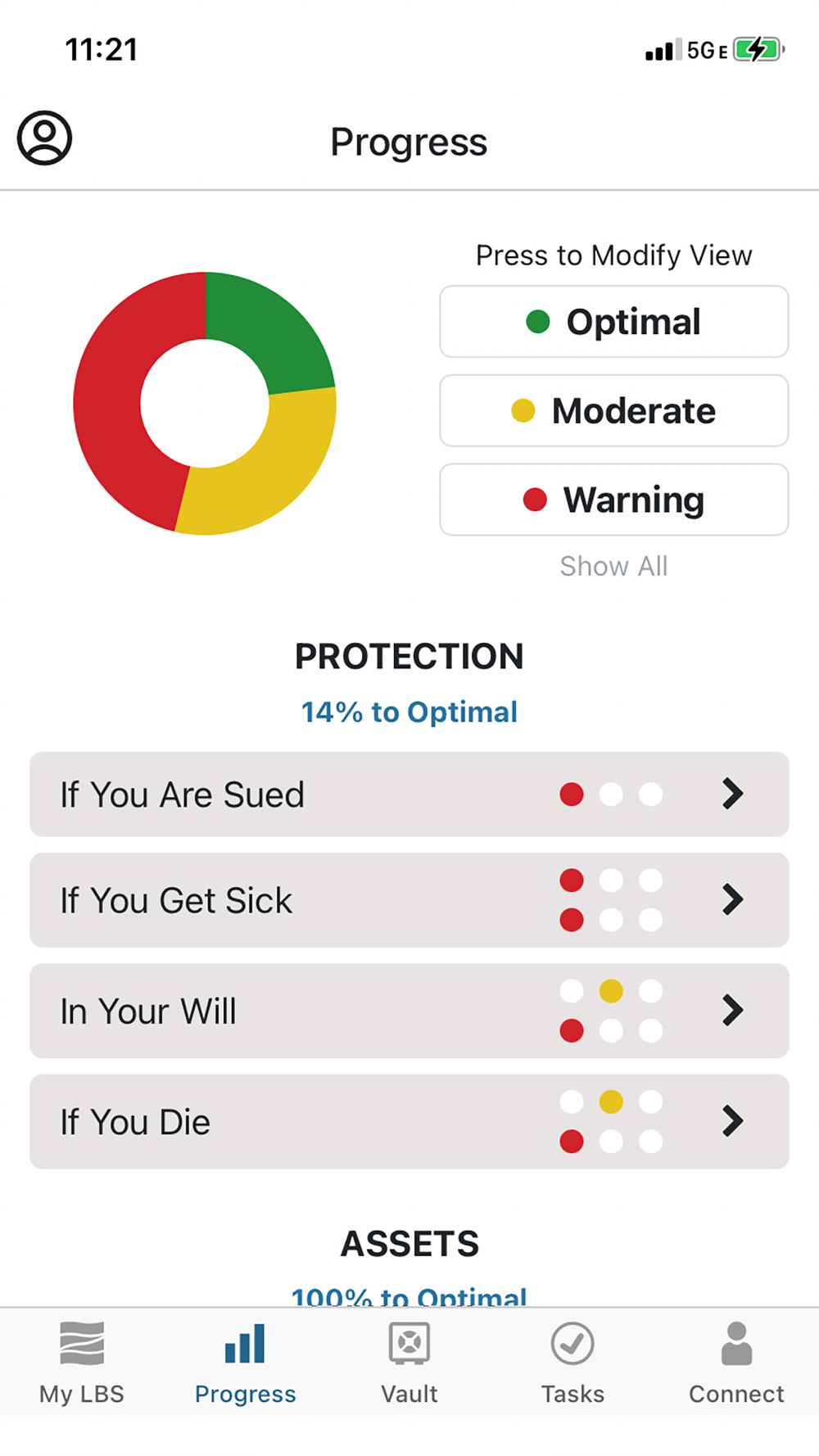Access for clients of The Living Balance Sheet® (LBS) to view your personal balance sheet, track goals, tasks, access your secure document vault and connect with your financial professional. Financial Balance® requires organization and priorities; LBS helps you stay on track.