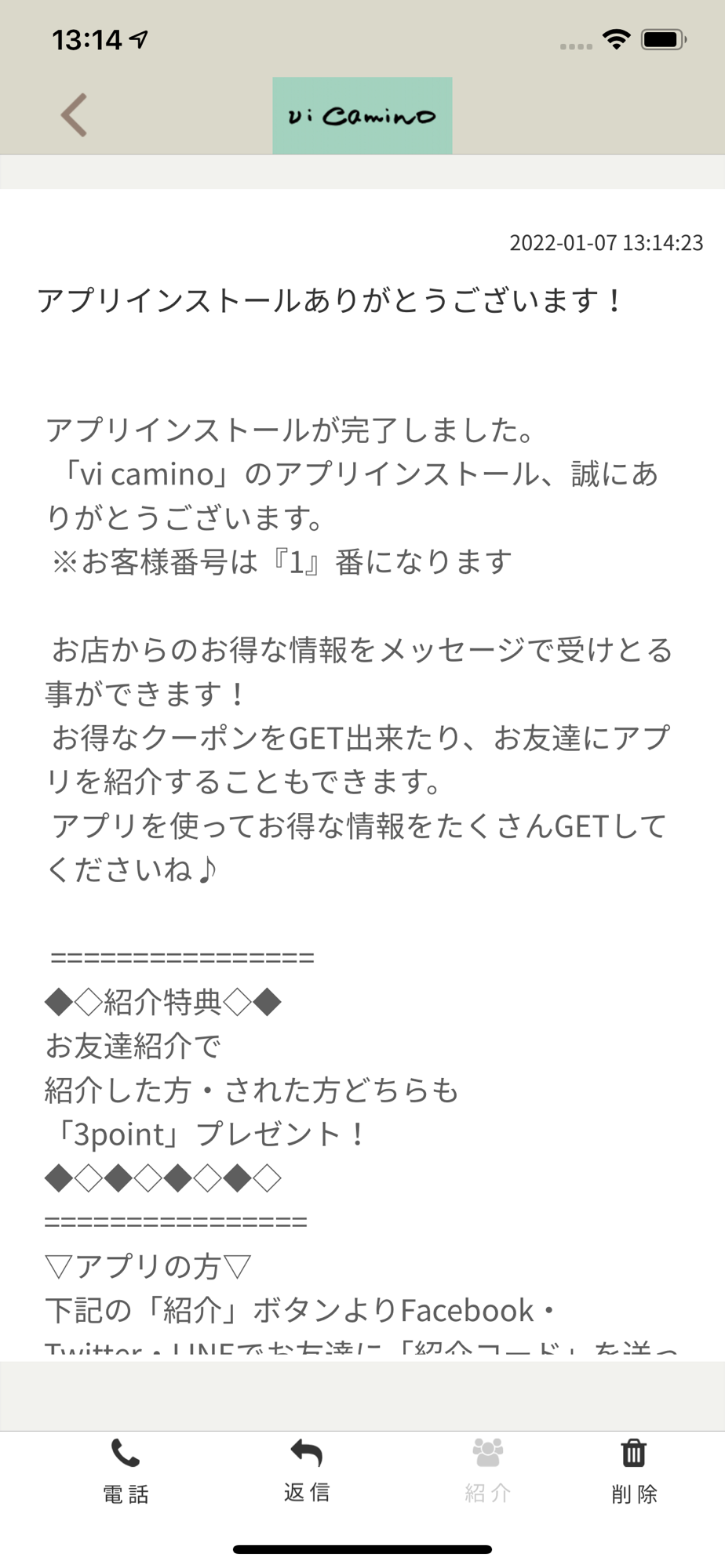 vi caminoのアプリをSNSを通じてお友達に紹介する事ができます。