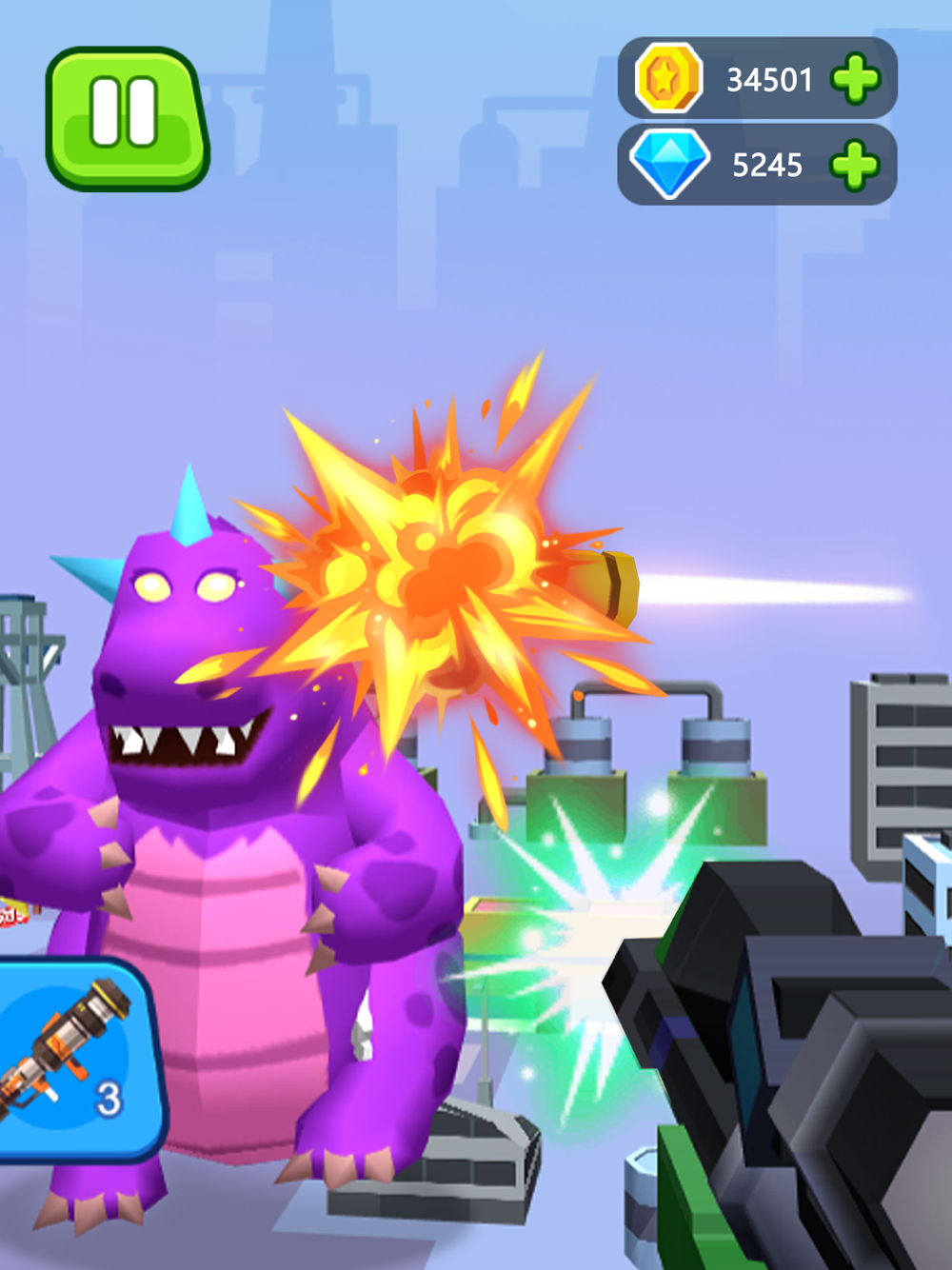 2.If the bullet hits different parts of the monster, the monster will be hurt differently. If the bullet hits it in the head, it can be killed with a single blow.