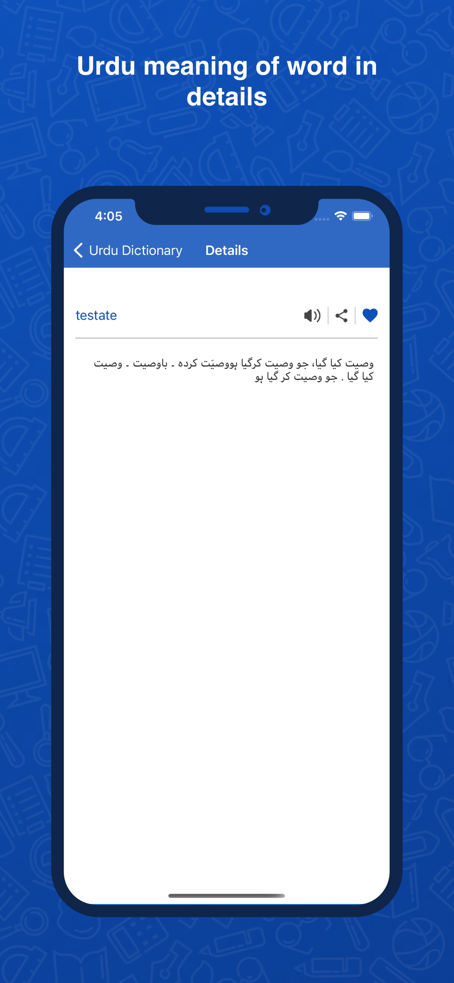 7- You can create a favourite list in our app of the translated words and can share it with anyone in their English and Urdu meaning.
