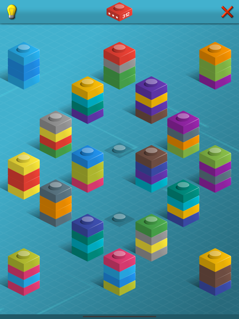 StackIt is a fun and exciting puzzle game! Try to sort the colored bricks of the stacks until all bricks with the same color stack on each other. A challenging yet relaxing game to exercise your brain and kill your time!