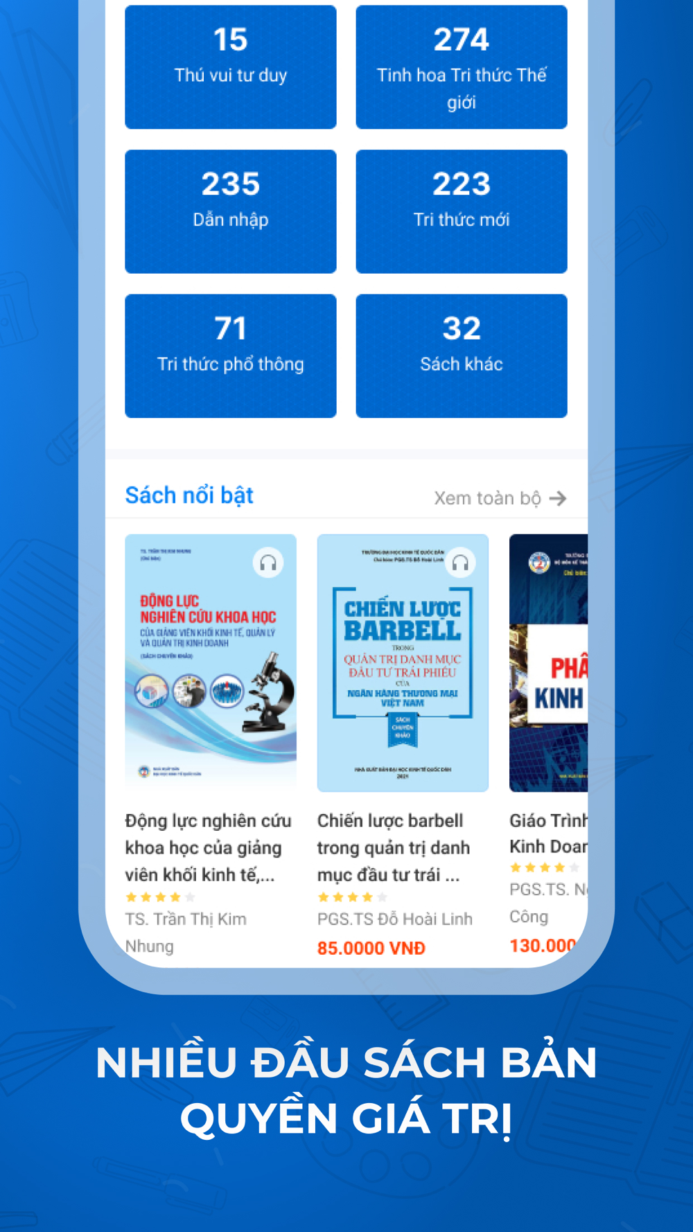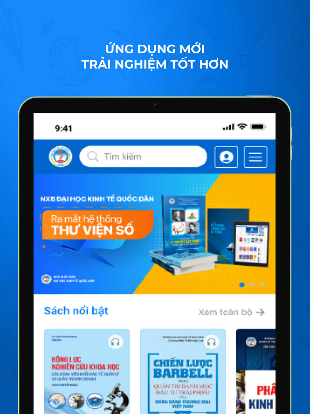 Kính thưa độc giả thân mến. Sau nhiều năm hoạt động trong lĩnh vực xuất bản với hàng ngàn đầu sách và hàng trăm tác giả tên tuổi cùng các đối tác tin cậy, NXB Kinh Tế Quốc Dân tiếp tục nỗ lực ra mắt ứng dụng đọc sách điện tử phục vụ bạn đọc gần xa. Cảm ơn quý độc giả đã luôn đồng hành. Kính chúc quý độc giả có những trải nghiệm hữu ích khi sử dụng ứng dụng.