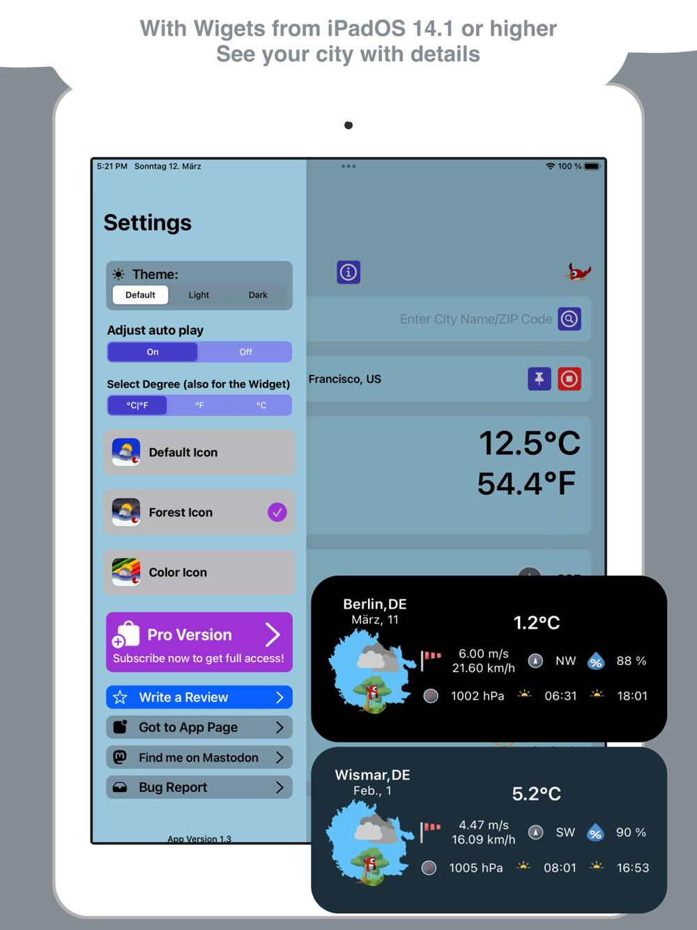 - Widget for the current weather (iOS/iPadOS 14.1 & macOS 11.1)