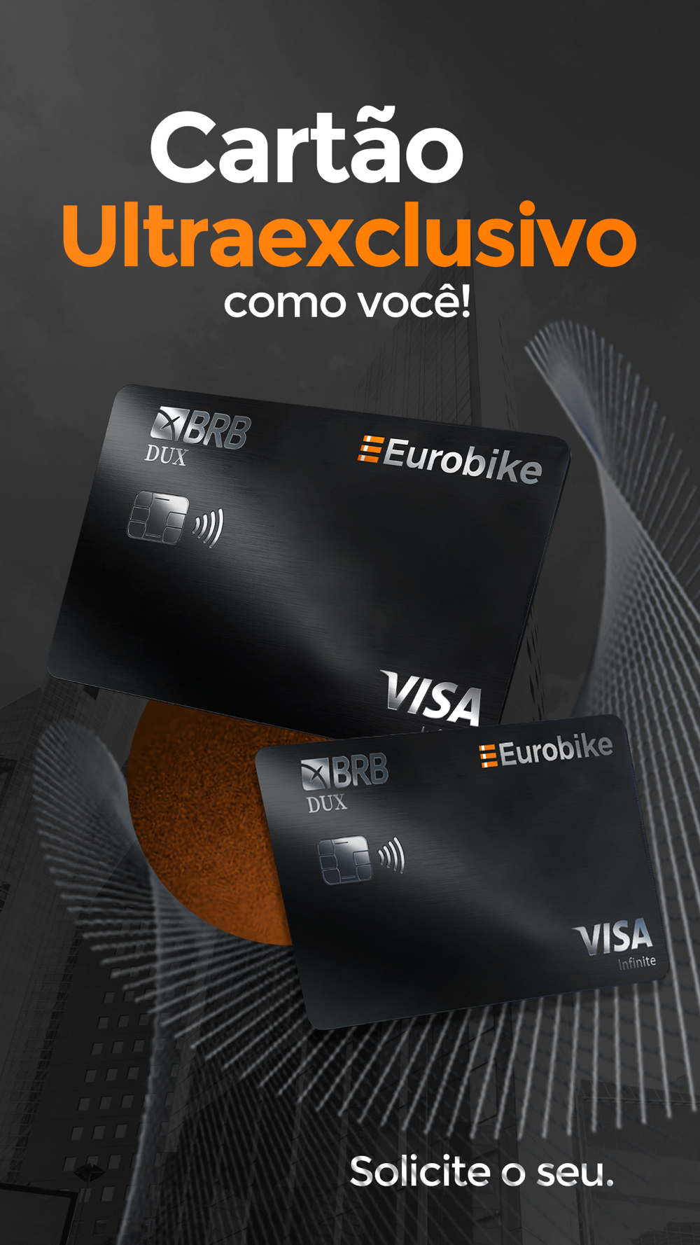 O cartão BRB Eurobike DUX dá acesso ilimitado à sala VIP do Aeroporto de Brasília, serviço de Concierge exclusivo, acesso aos benefícios do programa Eurobike+ e muito mais.