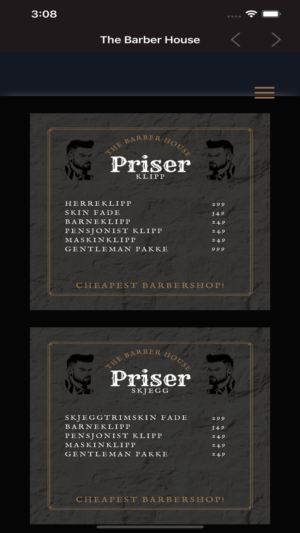 The Barber House er herrenes fristed og din lokale barbershop og frisør. Senk skuldrene og la en av våre dyktige barbere ta vare på deg og frisyren din. Vi tilbyr behandlinger som (klassisk hårklipp, Skin Fade, skjeggtrim og tradisjonell knivbarbering) Som kunde hos oss kan du forvente kvalitet og profesjonalitet ved hvert besøk, og vi vil gjøre vårt ytterste for å imøtekomme dine behov.