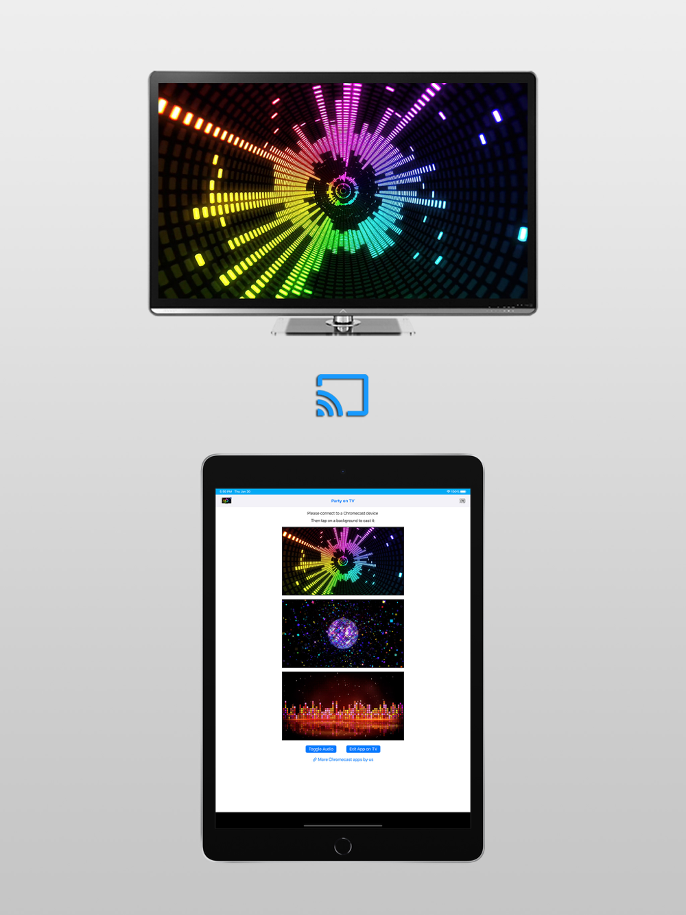 • No ads, no lags. Just fullscreen party backgrounds on the TV!