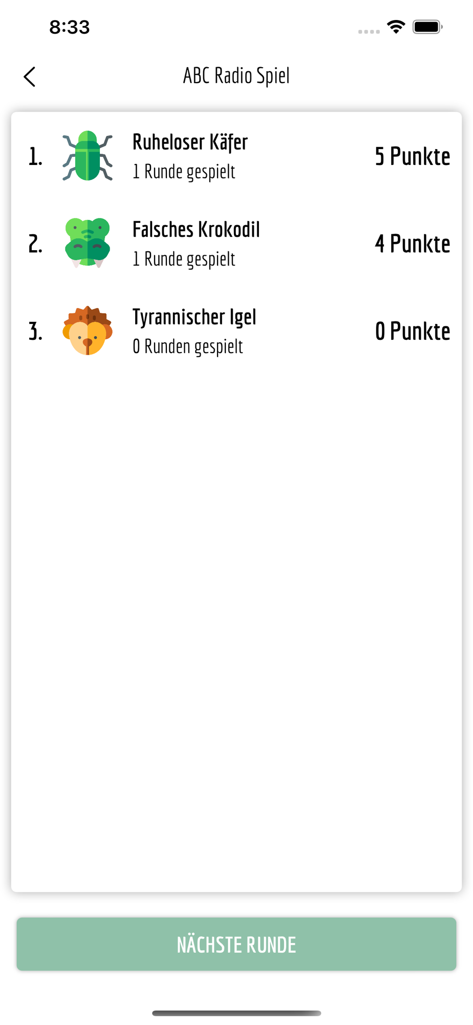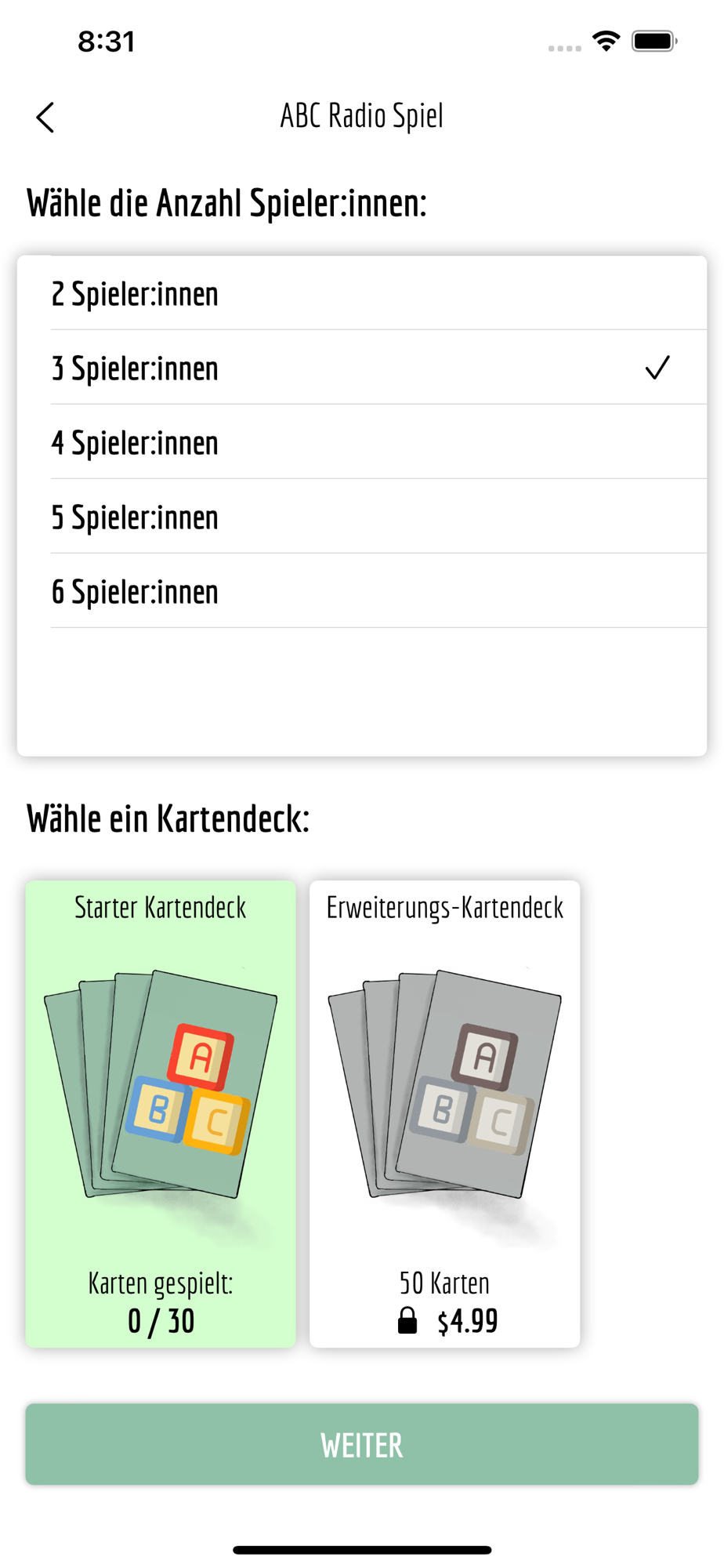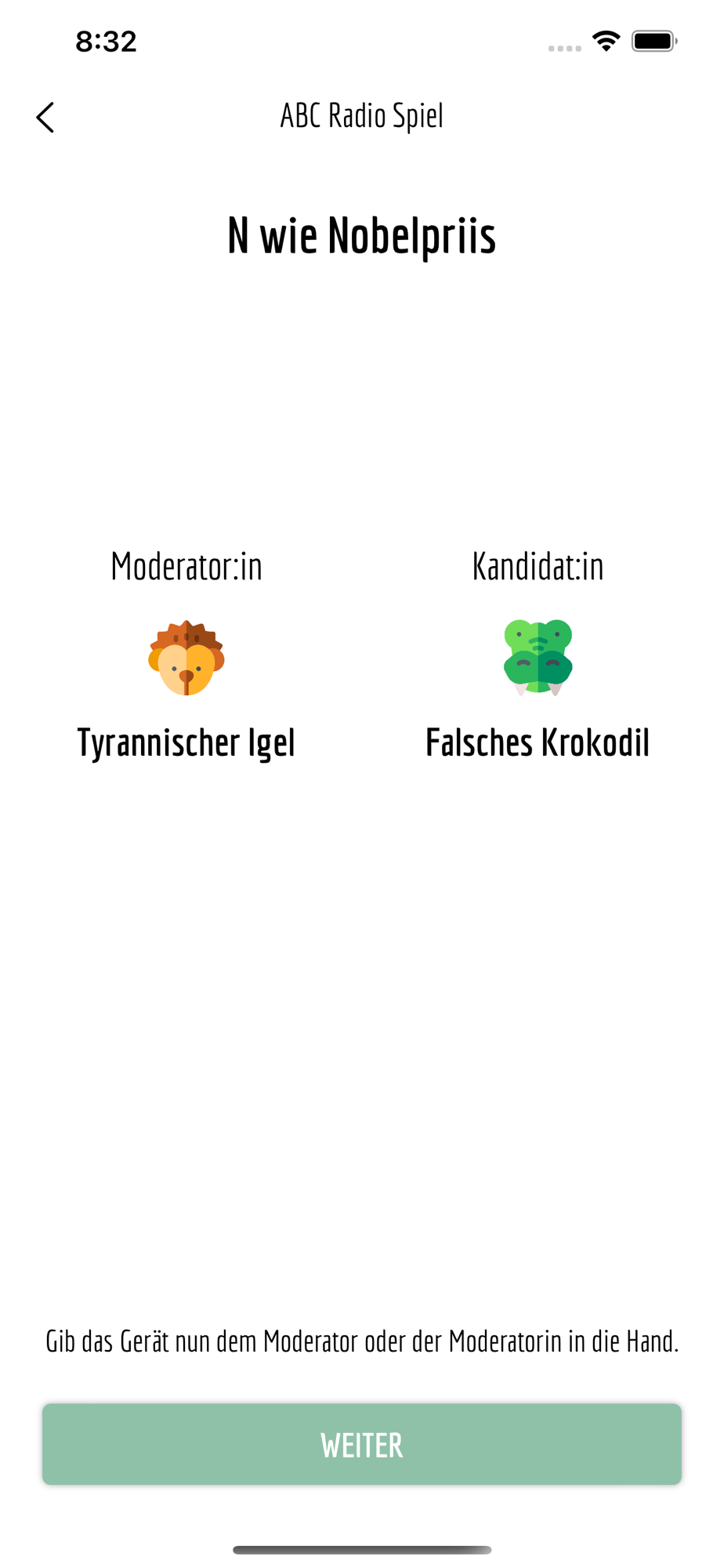Spieler:in 1 ist Moderator:in und liest die Fragen vor. Der Kandidat oder die Kandidatin versucht innerhalb von 45 Sekunden so viele Fragen wie möglich zu beantworten. Die Antworten müssen alle mit dem gegebenen Anfangsbuchstaben beginnen.