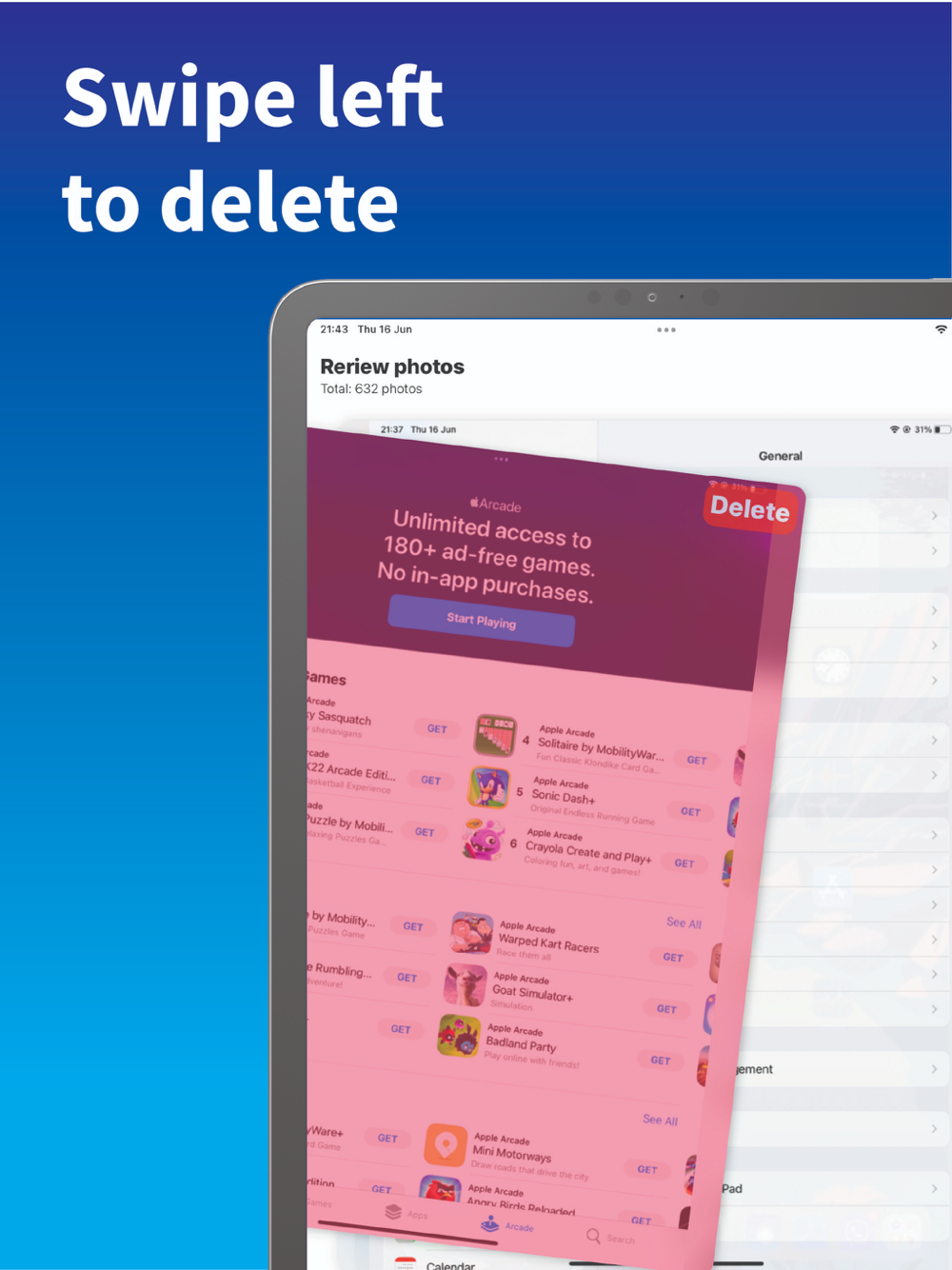 Are your photos swarming with duplicates? Stop that now. Delete those extra copies and organize your camera roll in an easy and quick way. Delete through swiping!