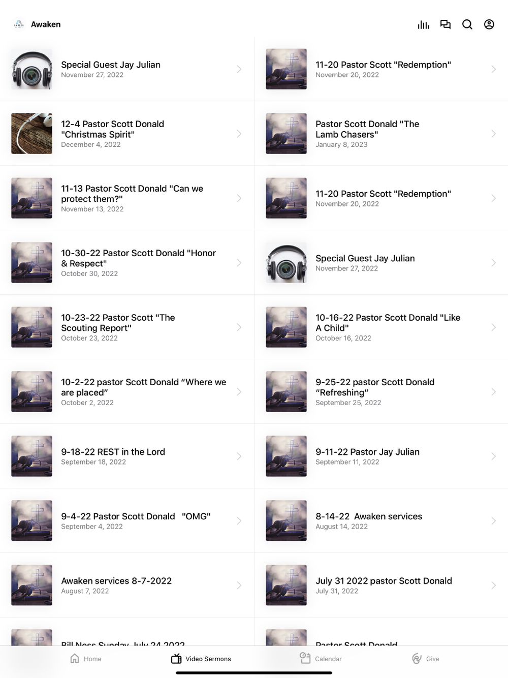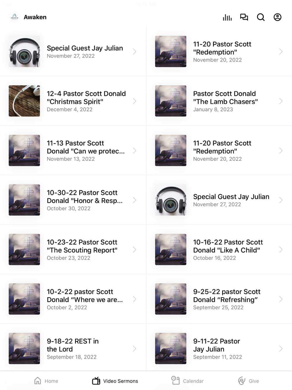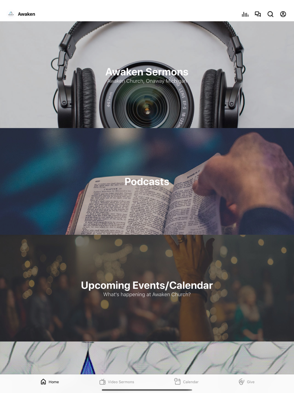 This app will help you stay connected with the day-to-day life of Awaken Church. With this app you can: watch or listen to past messages; stay up to date with push notifications; share your favorite messages via Facebook, or email; and download messages for offline listening.