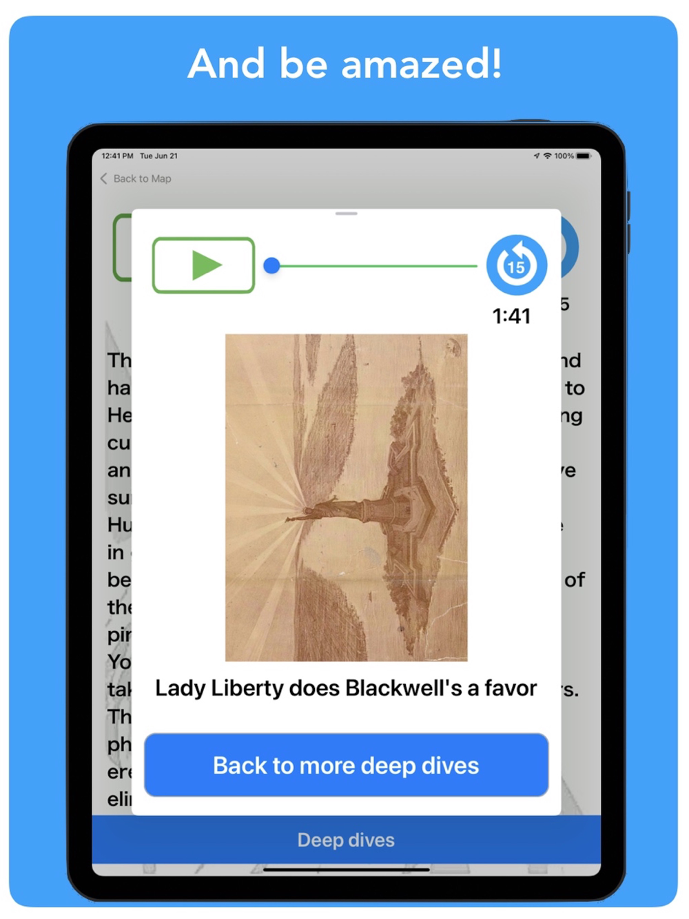 To obtain real-time walking directions from your location to any of the Places on the tour or anywhere else on the island, your device’s Location Services/connectivity must be turned on. If you don’t need directions, no internet connectivity is required to enjoy all of the app’s rich content. Once purchased, the tour is yours. You can use it as often as you like and share the experience with friends and family whenever you choose.