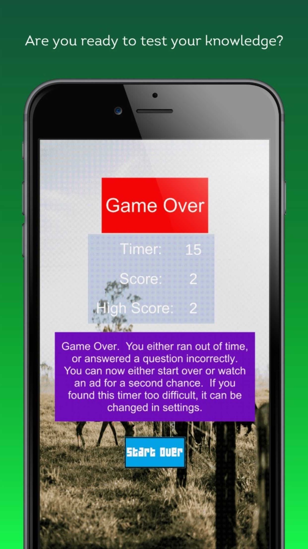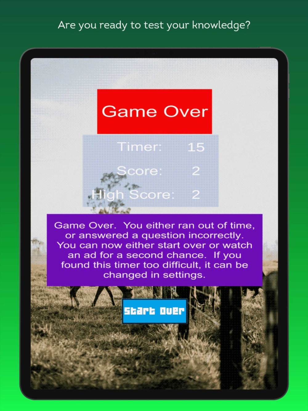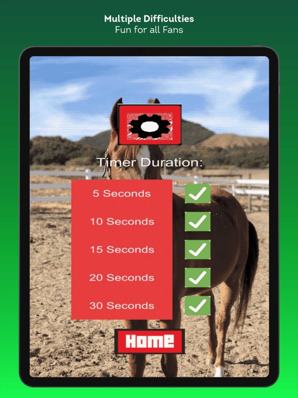 A limited amount of time is given to answer each question, to add challenge and excitement to the game. This timer can be adjusted in the settings menu.