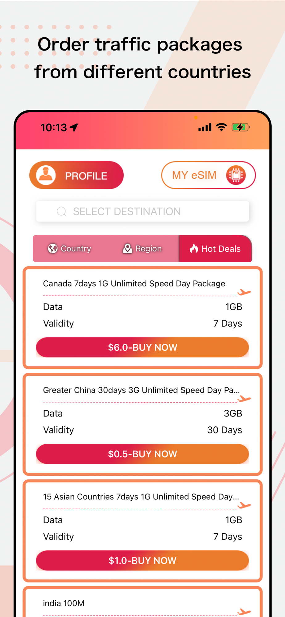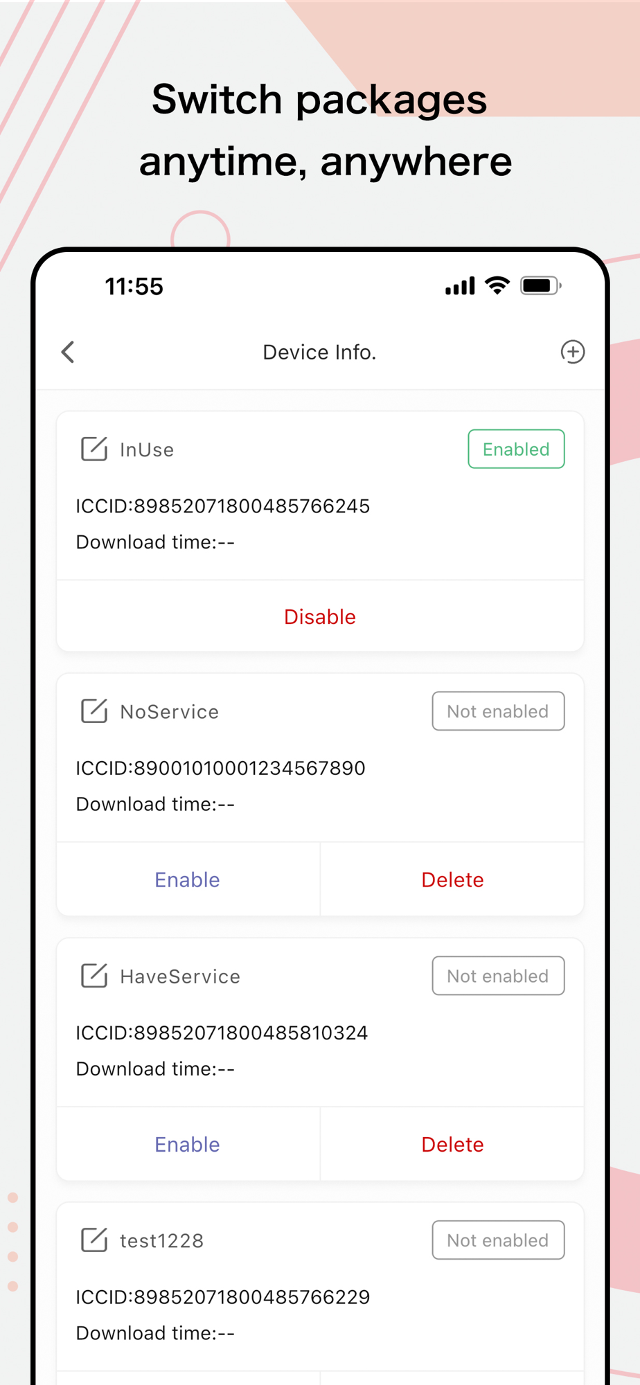 This application is a software that integrates the functions of wireless device management and package mall. You can order eSIM packages from multiple countries in the application, or download the ordered packages to the bound device after ordering, and manage/switch the packages in the device. At the same time, you can also download and manage traffic packages ordered elsewhere for your device.