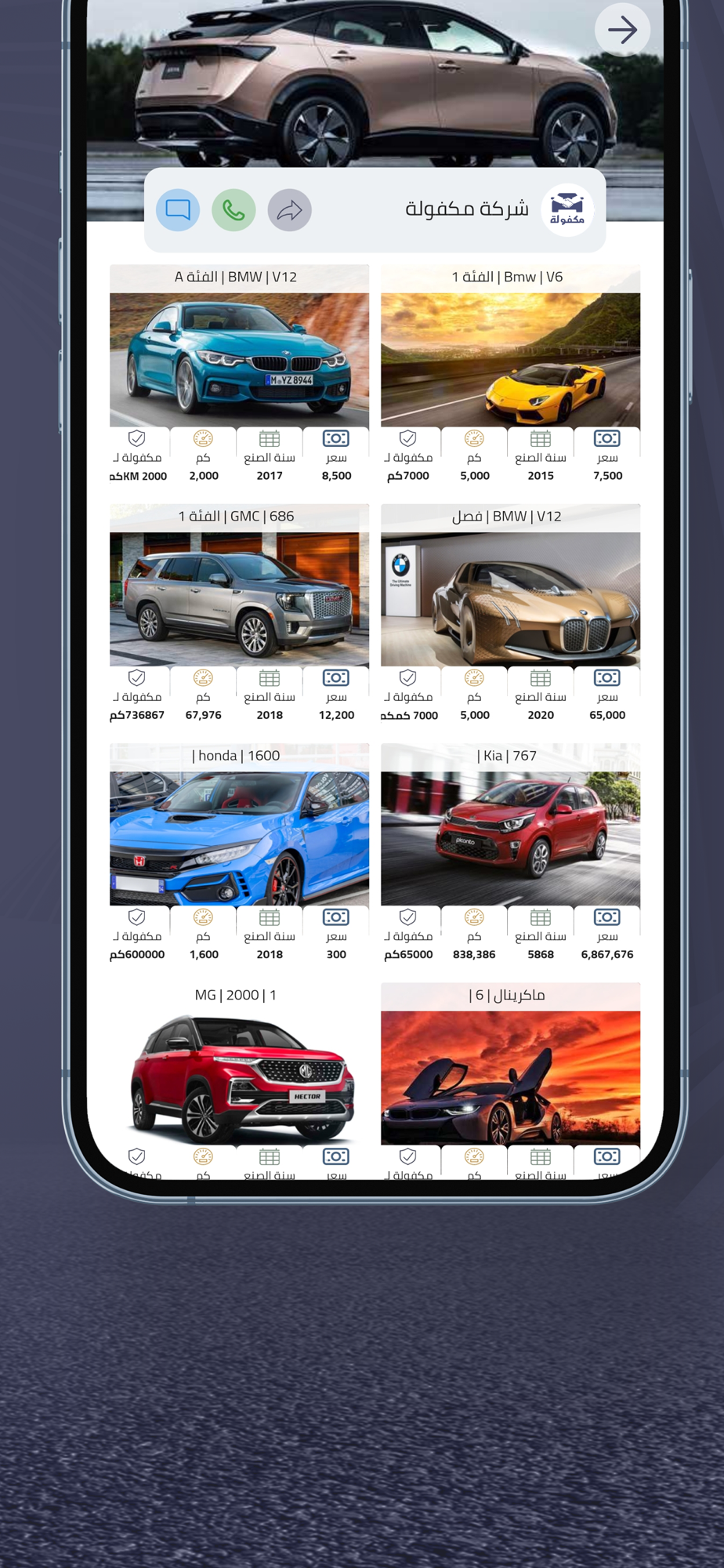 بكل سهولة تقدر تستعرض السيارات المكفولة من الوكالة وتتعرف على مواصفتها وأسعارها مع إمكانية التواصل مباشرة مع موظف المبيعات بالوكالة وحجز السيارة مباشرة من خلال التطبيق