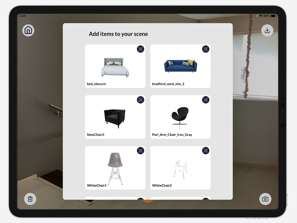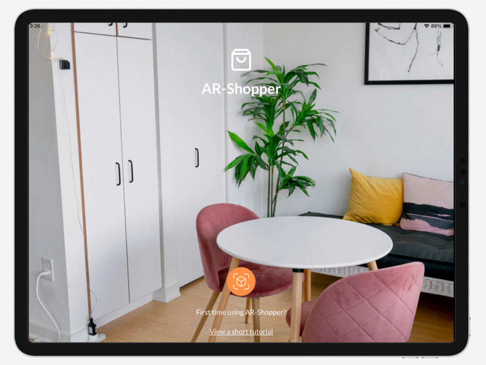3)They open the AR Shopper app and place the selected object in their space, using their rear-facing camera and the app’s user-friendly interface.