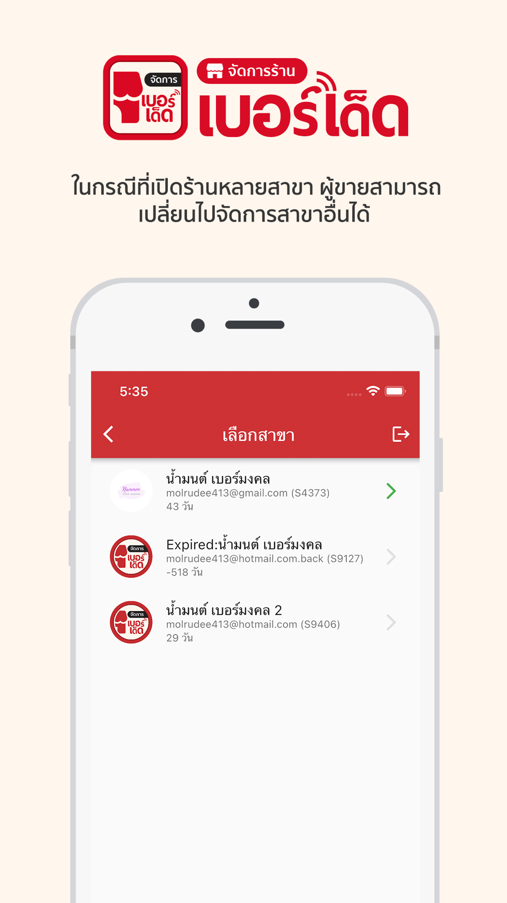 แอปพลิเคชันสำหรับเจ้าของร้านที่เปิดร้านขายเบอร์โทรศัพท์มือถือที่เว็บไซด์ https://berded.in.th