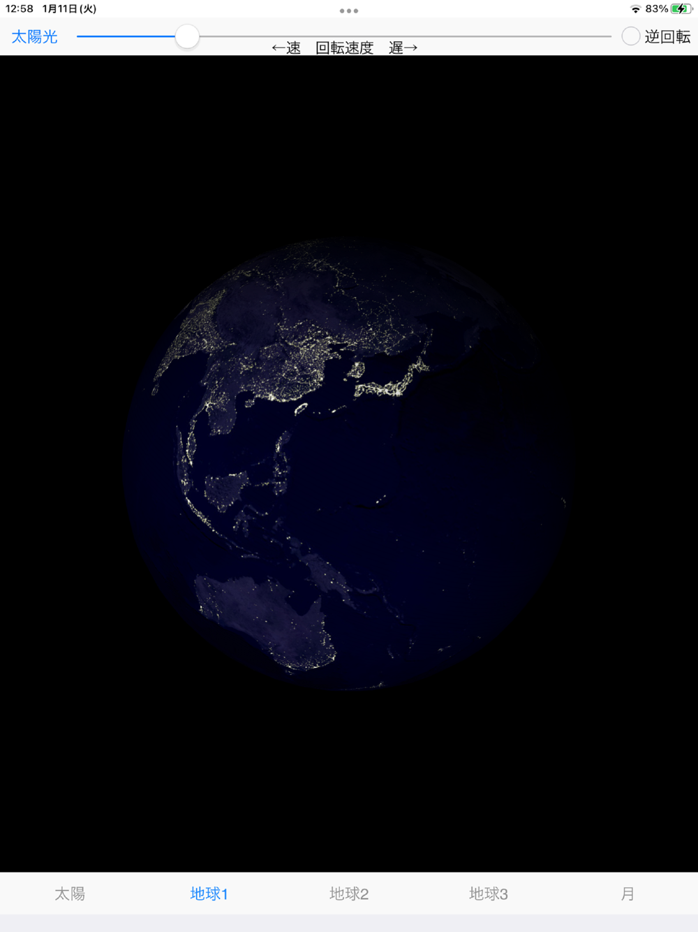・自転速度を変えることができます。一番速いのは1秒で、一番遅いのは300秒で1回転します。