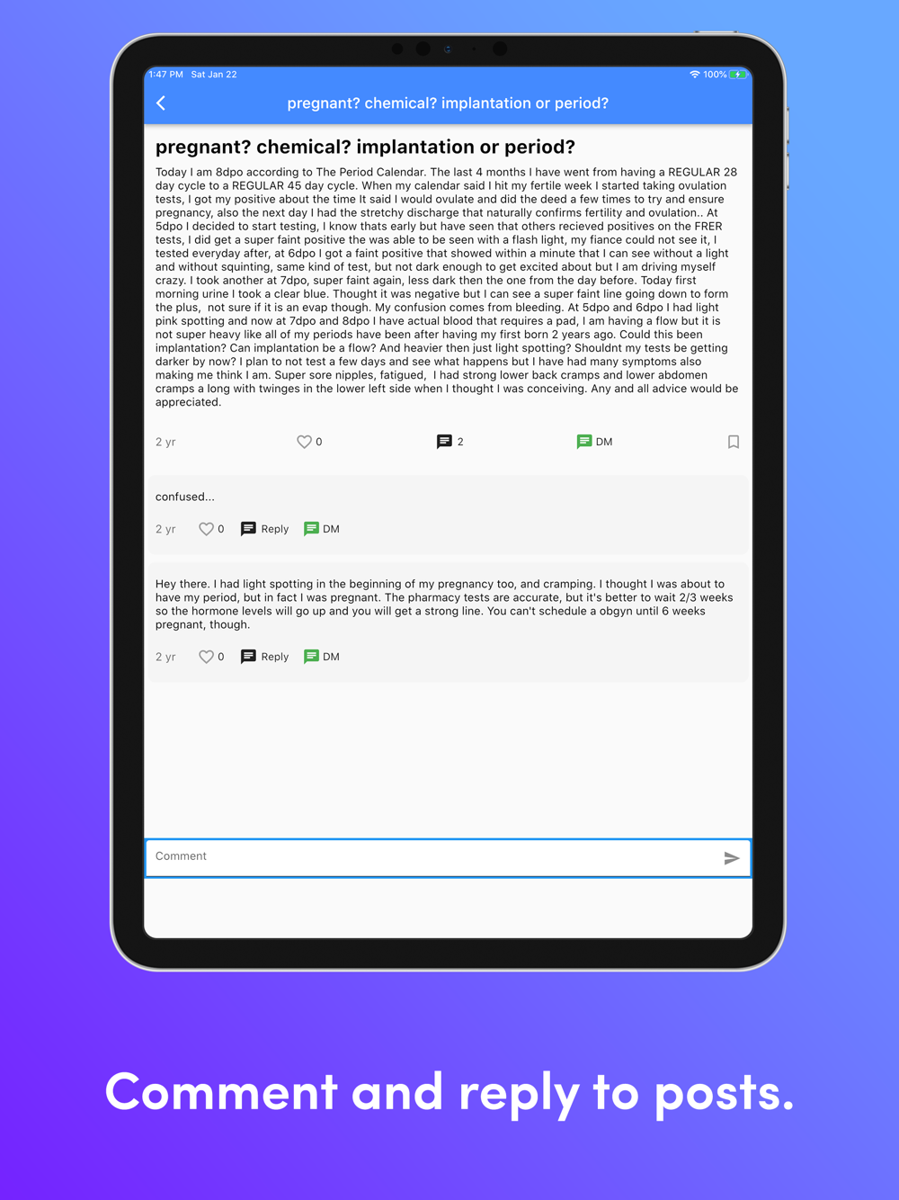 The purpose of this app, Peer Pregnancy, is to provide a peer support network for women in this difficult situation. No shame or criticism is allowed. Users who violate these guidelines will be removed.