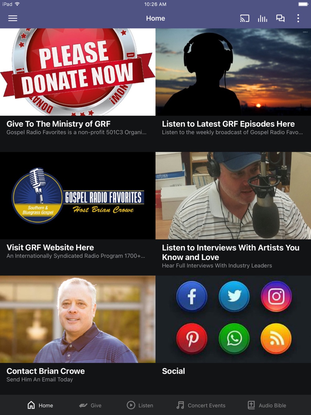 Gospel Radio Favorites is an internationally southern gospel syndicated radio program hosted by Brian Crowe, currently aired on over 1700 radio stations around the world. Brian started in the late 90's broadcasting every Saturday morning on a four hour A.M. radio station in Flint, Michigan. 25 years later, the radio show has grown to over 1700 radio stations around the world.