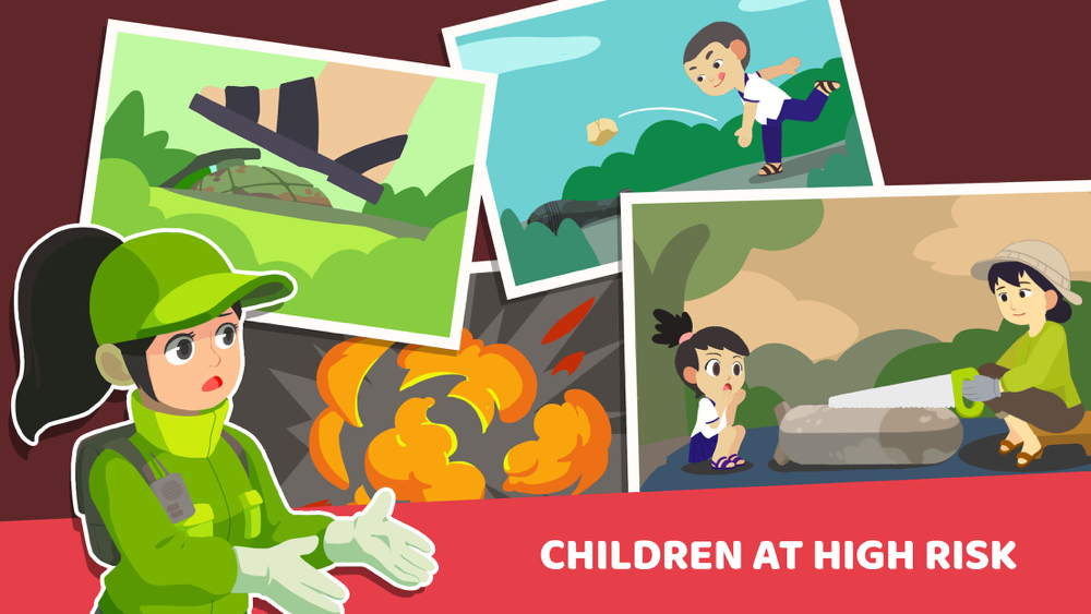 Educational game teach people who live in danger zone all about mine risk and how to prevent injury from unexploded ordinances/landmines.