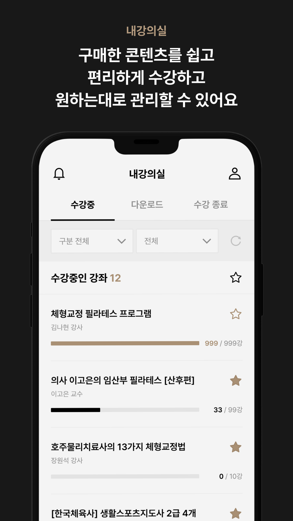이파마스터 수강 앱으로 사이트에서 수강 중인 강의를 언제, 어디서나 스트리밍과 다운로드를 통해 모바일에서 수강해보세요!