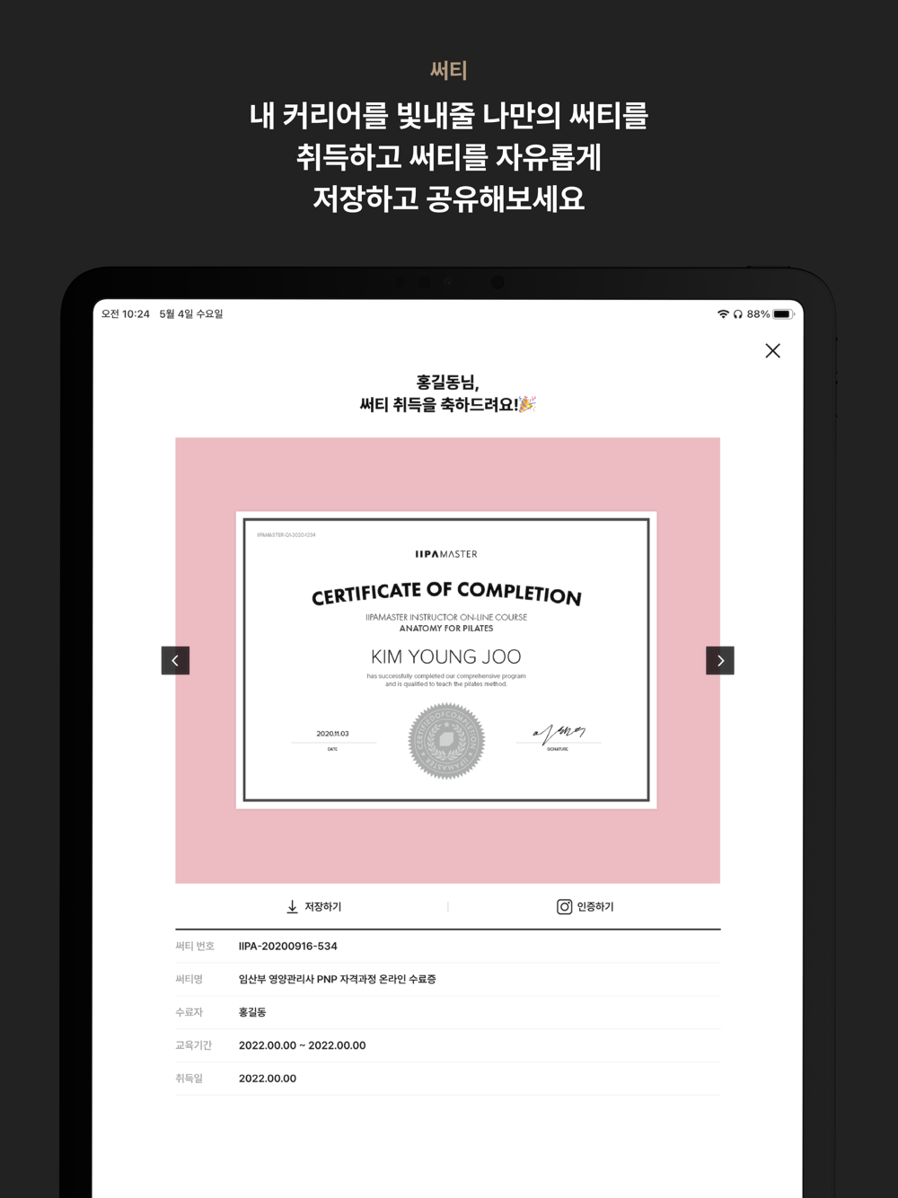 - 온라인 과정 수강 후 온라인 시험 응시를 통한 수료증 발급(웹)