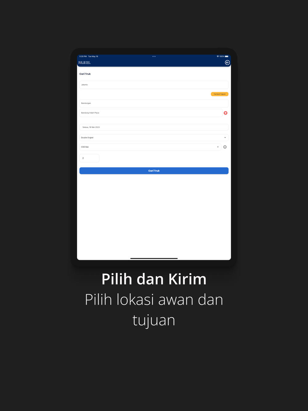 Cargo owner dapat mengajukan pemesanan truk melalui platform trucking yang tersedia. Dengan demikian pengguna jasa memiliki informasi dan pilihan atas penawaran jasa Trucking dari beberapa perusahaan / platform trucking melalui NLE
