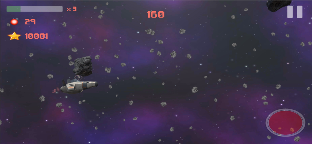 At the same time, the game has straightforward and convenient to control. Just tap on the screen to control the ship and shoot asteroids by pressing the red button. For the convenience of control, in the game settings, you can enable or disable vibration in collisions, adjust the volume of sounds, and also change the direction of the ship’s flight.