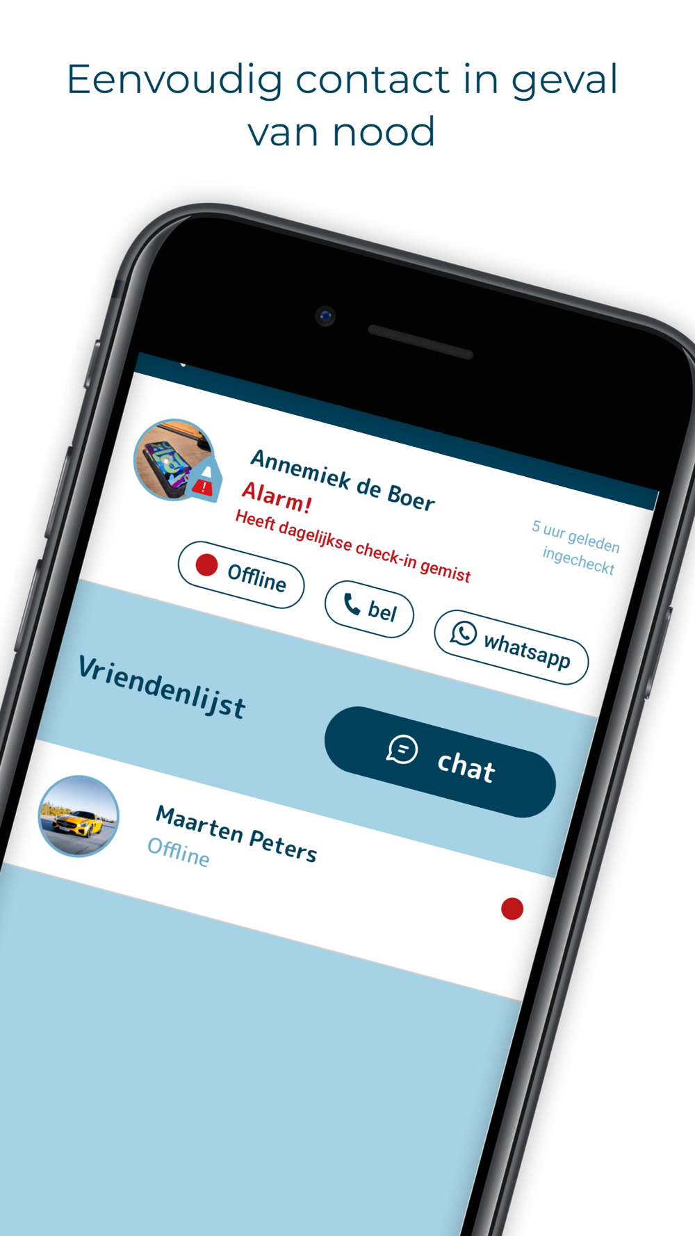 In de app kun je zelf de mensen toevoegen die jij volledig vertrouwt. In de app noemen we dit jouw ‘HAY – vrienden’.