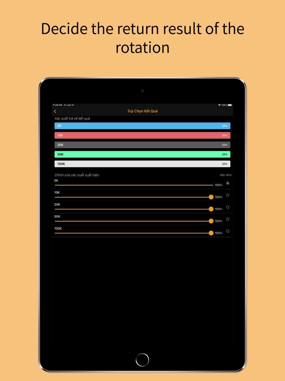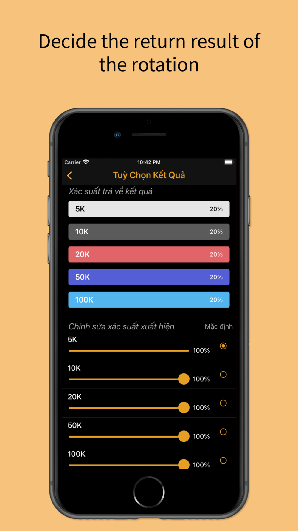 In addition, the wheel can select the return results.