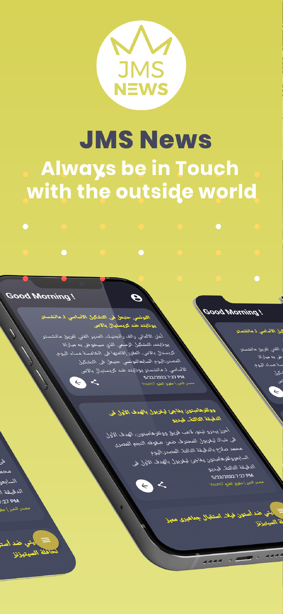 JMSNEWS App is a News App enabling users to stay up-to-date with the latest news by customizing and personalizing their news feed from over 3000 various news sources, including sources from newspapers, sports clubs, TV channels, news agencies, technology, digital newspapers and blogs. The sources are available from various countries across the Middle East, such as Saudi Arabia, Egypt, UAE, Kuwait, Qatar, Bahrain, Jordan, Lebanon, Yemen, Tunisia, Palestine, Morocco, Libya, and others. It also enables users to be the first to know by sending them push notifications of breaking news events, optionally. Download Now!