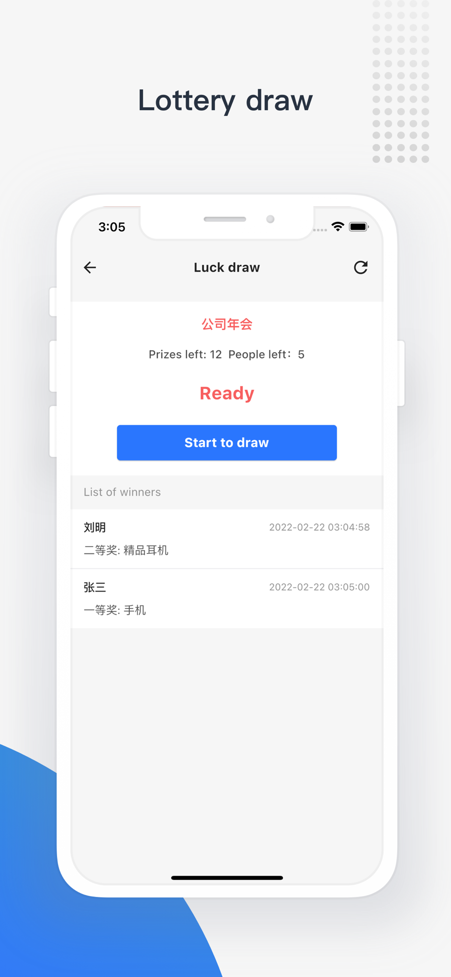 4.Luck draw: Set the number of prizes and the number of Raffles, and draw one person each time