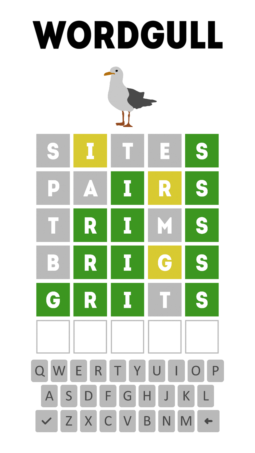 WordGull is an endless word game where you must guess a 5 letter word with 6 attempts.