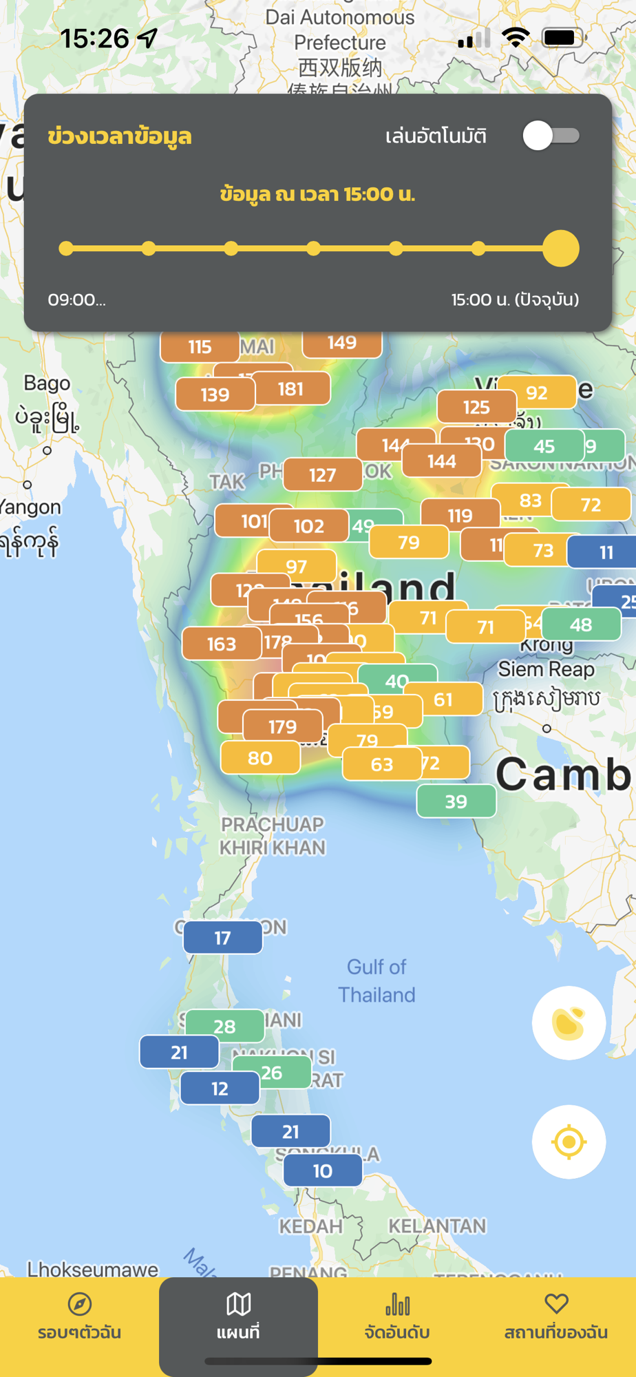 1.คุณภาพอากาศ (AQI) ภาพรวมทั้งประเทศแบบแผนที่