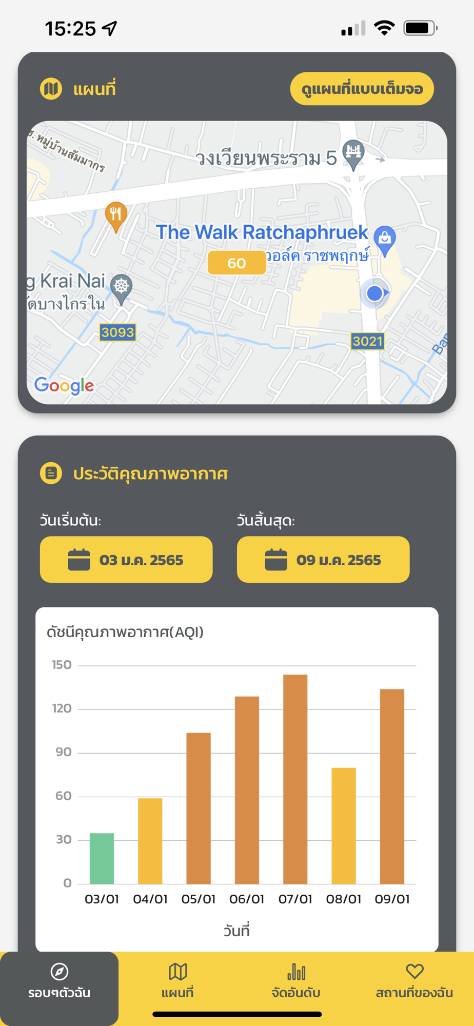 2.คุณภาพอากาศ (AQI) พื้นที่รอบ ๆ ตัวฉัน