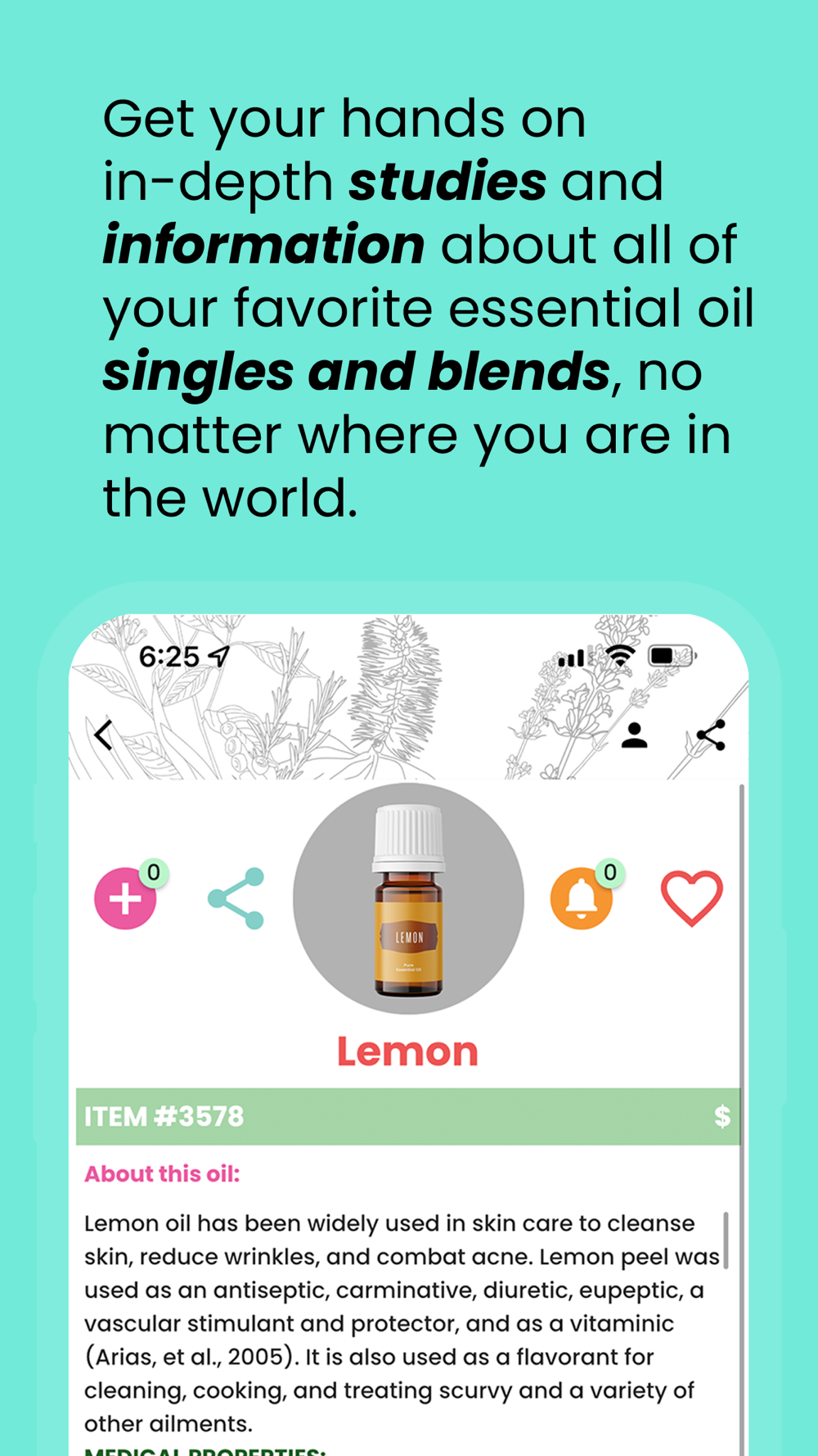 Disclaimer: This app contains essential oil information but is not meant to be used or treated as medical advice. Always consult with your doctor before starting any medical treatments. Life & Science Publishing is not affiliated with Young Living.
