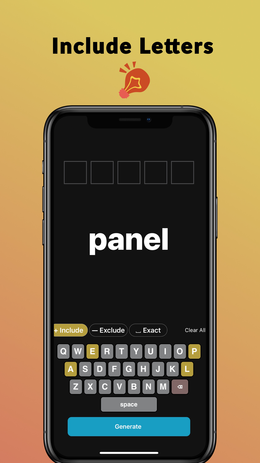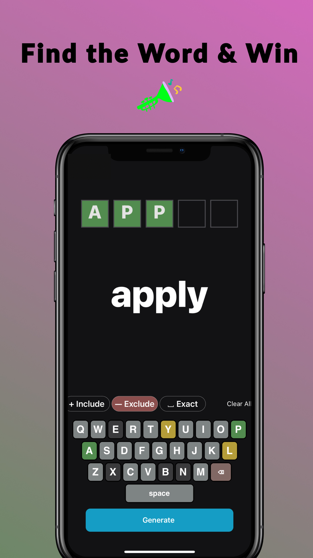 This app is not a Wordle game or a World clone. It's just a tool to generate words for Worlde and any other Word Puzzle games to win the game.