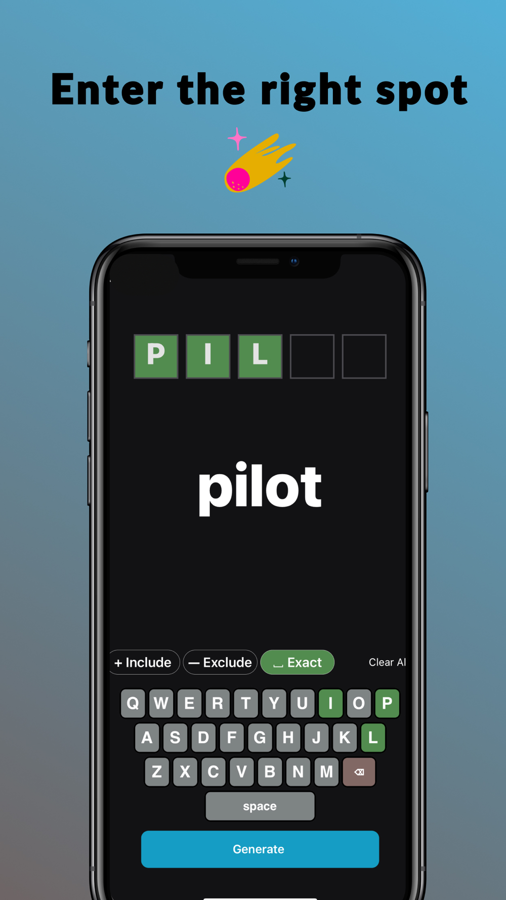 Do you want to beat the game or your friend? Choose the letters to exclude or include and enter the right spot.