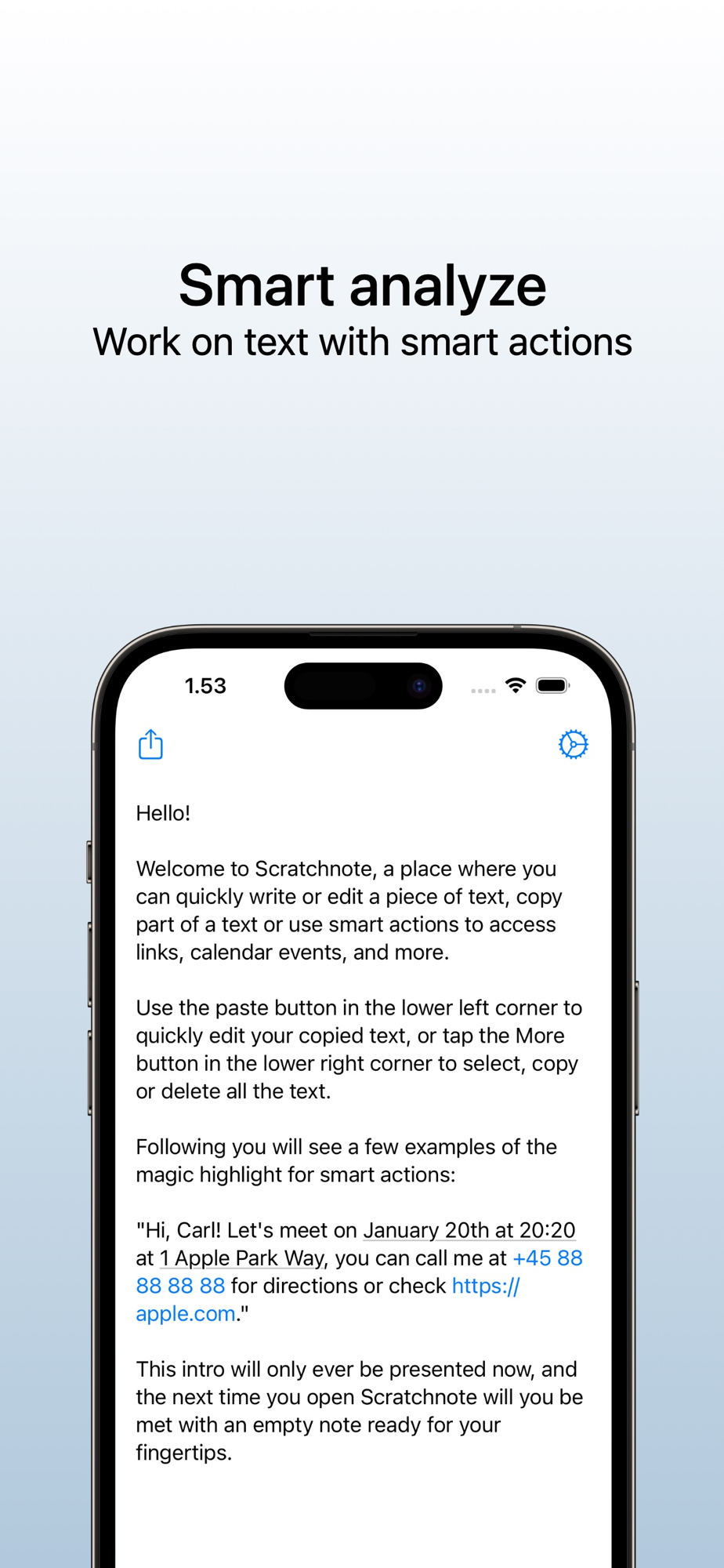 Scratchnote is the perfect place to quickly write, edit, and copy text. Plus, use our smart actions to access links, calendar events, and more! Scratchnote is the perfect temporary solution for all your writing needs--start creating now!