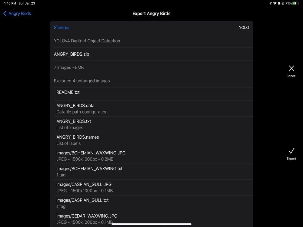 ・Export images and annotations for training with YOLO, Apple Create ML, or Google Auto ML
