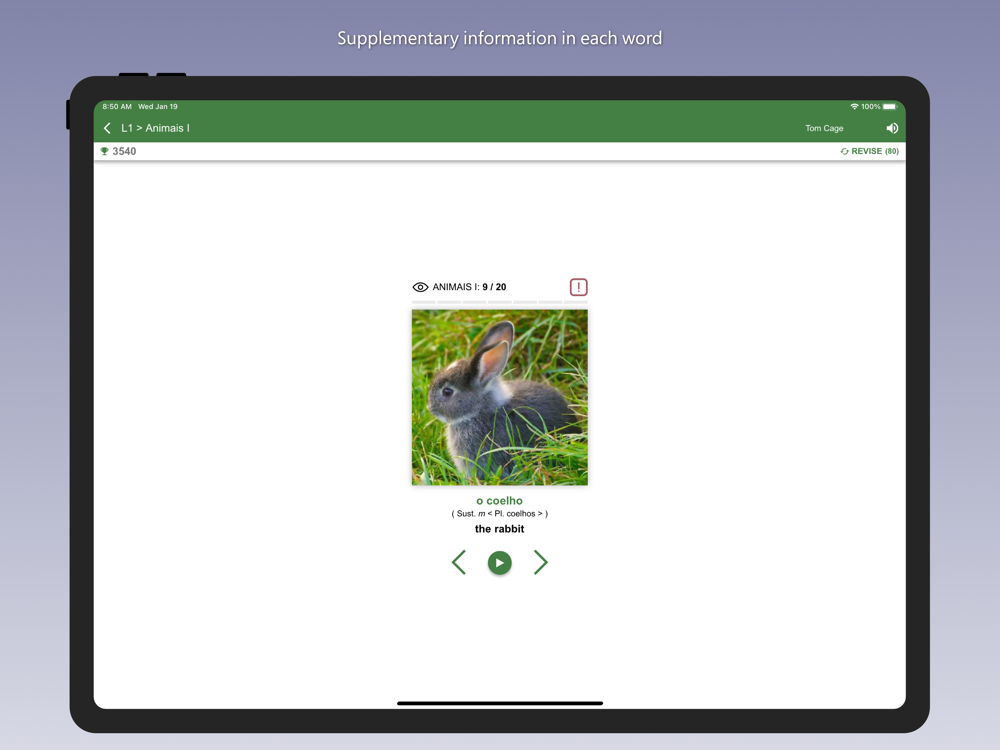 Free app to learn Portuguese by improving your VOCABULARY in an easy and fast way, with more than 5,000 words classified by levels and topics.