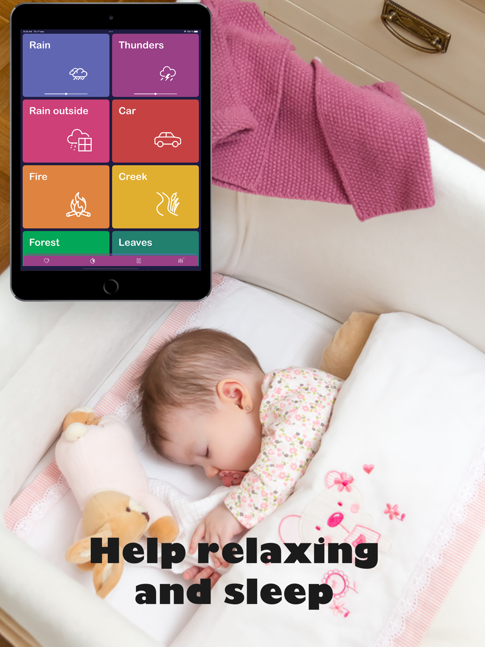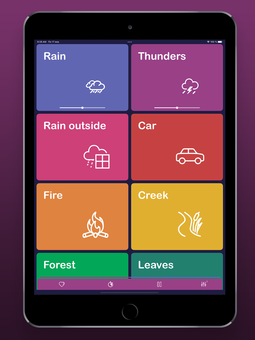This app brings great collection of HD sounds that can be mixed into the perfect relaxing ambiences. You can choose from different types of rain, nature sounds, white noise . Save your favorite sound mixes so they are always by hand with you. You can schedule the timer that will automatically stop the application. It does not require internet connection so you can use it anywhere without worrying about the data. It can work in background mode. You can also use with your apple watch
