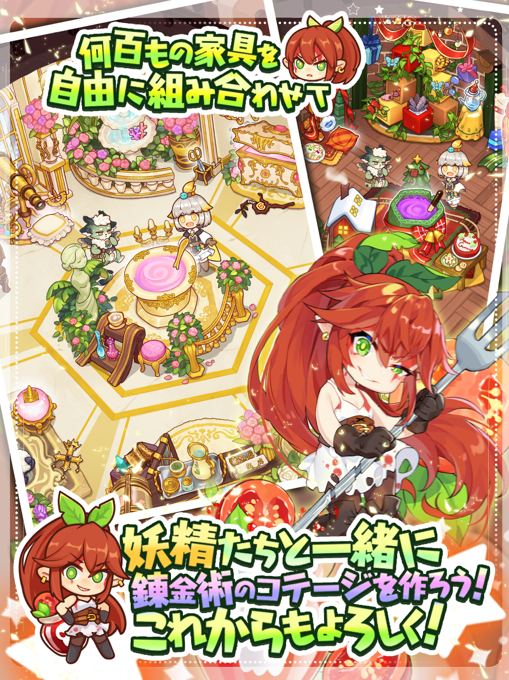 たくさんの家具や装飾であなただけの錬金工房を作り出す。ヨーロッパ式?癒し系?ファンタジー的な?全部組み合わせ放題!
