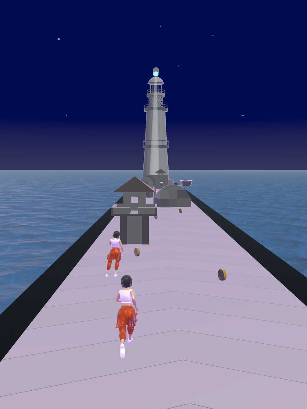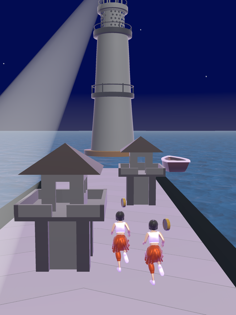 Reach the end of the island and escape without getting caught by the cops and the light of the lighthouse!
