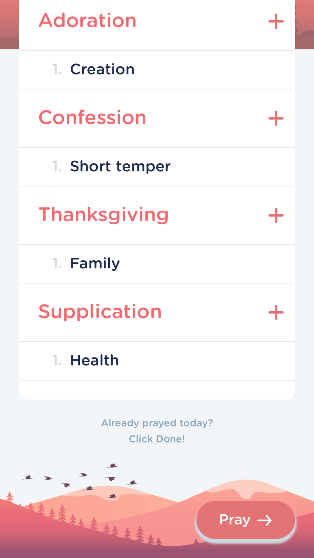 Each day, Sparrow encourages you to read and pray with an easy to use app for reading and praying with daily reminders, scriptures for each day to use for additional study, and simply save your prayers for easy access each day.