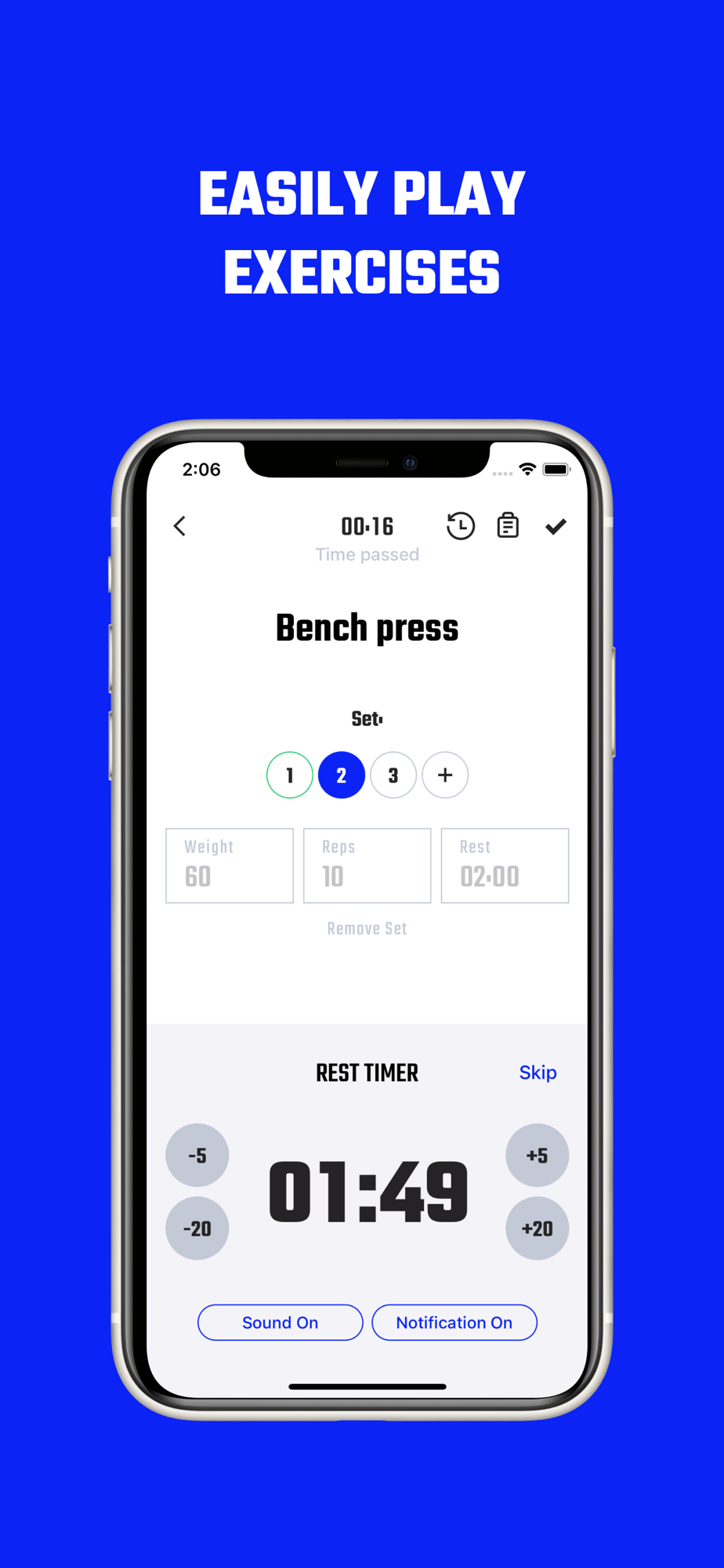 Easily create workout routines and track your progress. Add exercises to routines and group them however you want. Create your own exercises and play them with a handy rest timer. The rest timer will notify you when the rest has completed, so you can browse other apps while resting.