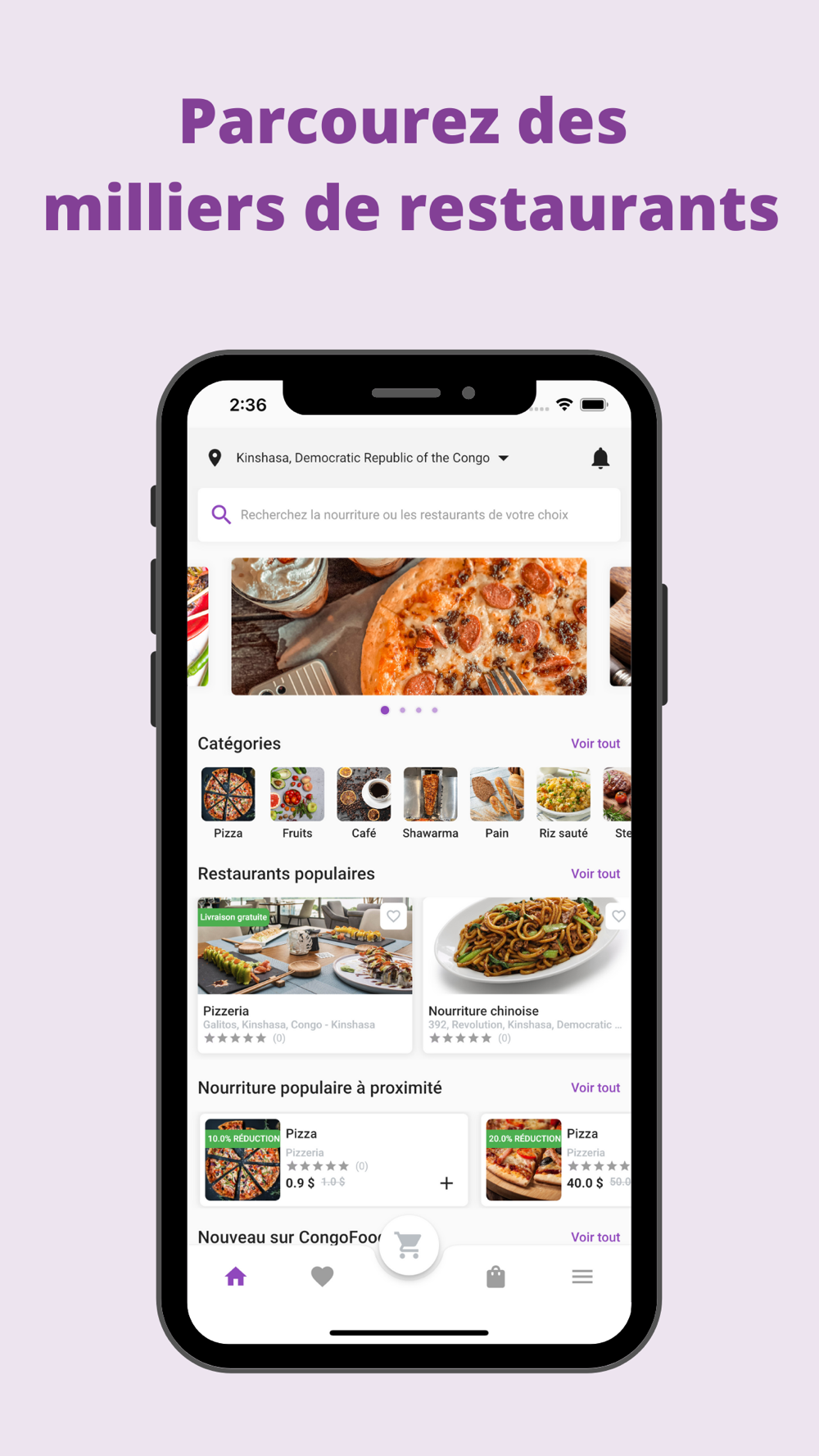Parcourez les restaurants locaux et les favoris de la restauration rapide pour vous inspirer. Ou obtenez exactement ce que vous cherchez en recherchant un restaurant, un plat ou une cuisine spécifique. De Kwanga, fufu, Pizza, Shawarma. Si vous en avez faim, essayez Bilengi App.