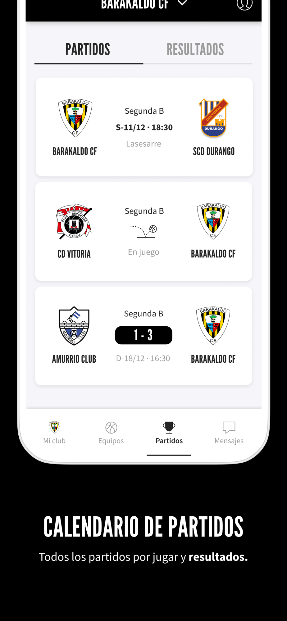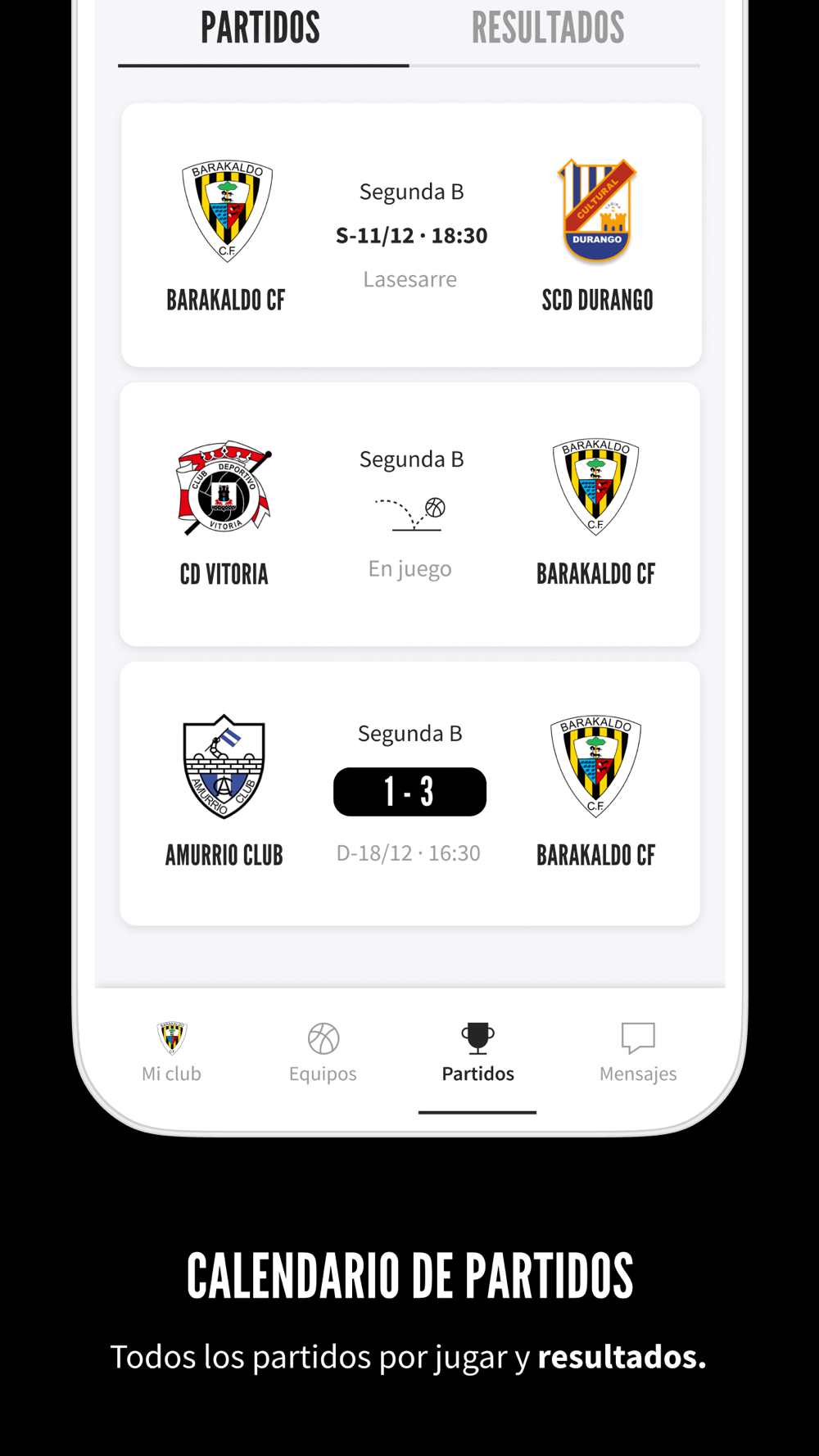Descárgate la nueva aplicación del Barakaldo CF y disfruta de todas estas funcionalidades y servicios: